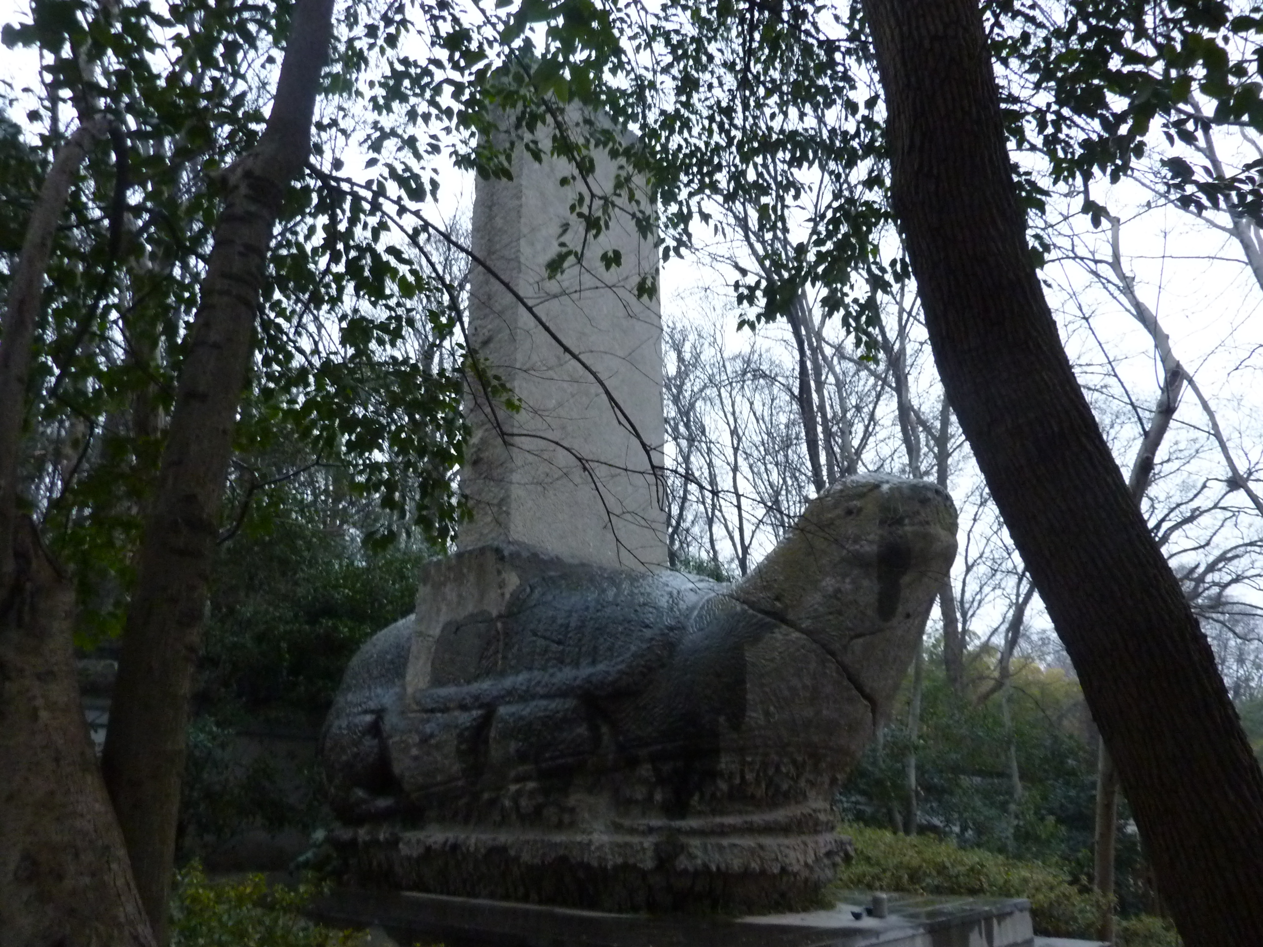 무덤 남쪽에 있는 산인 매화산(梅花山)은 삼국 시대 (220-265) 동오의 왕 손권의 능묘이다. 이 무덤이 있다는 사실 때문에 신도(Sacred Way)가 곧게 뻗어 있지 않다.