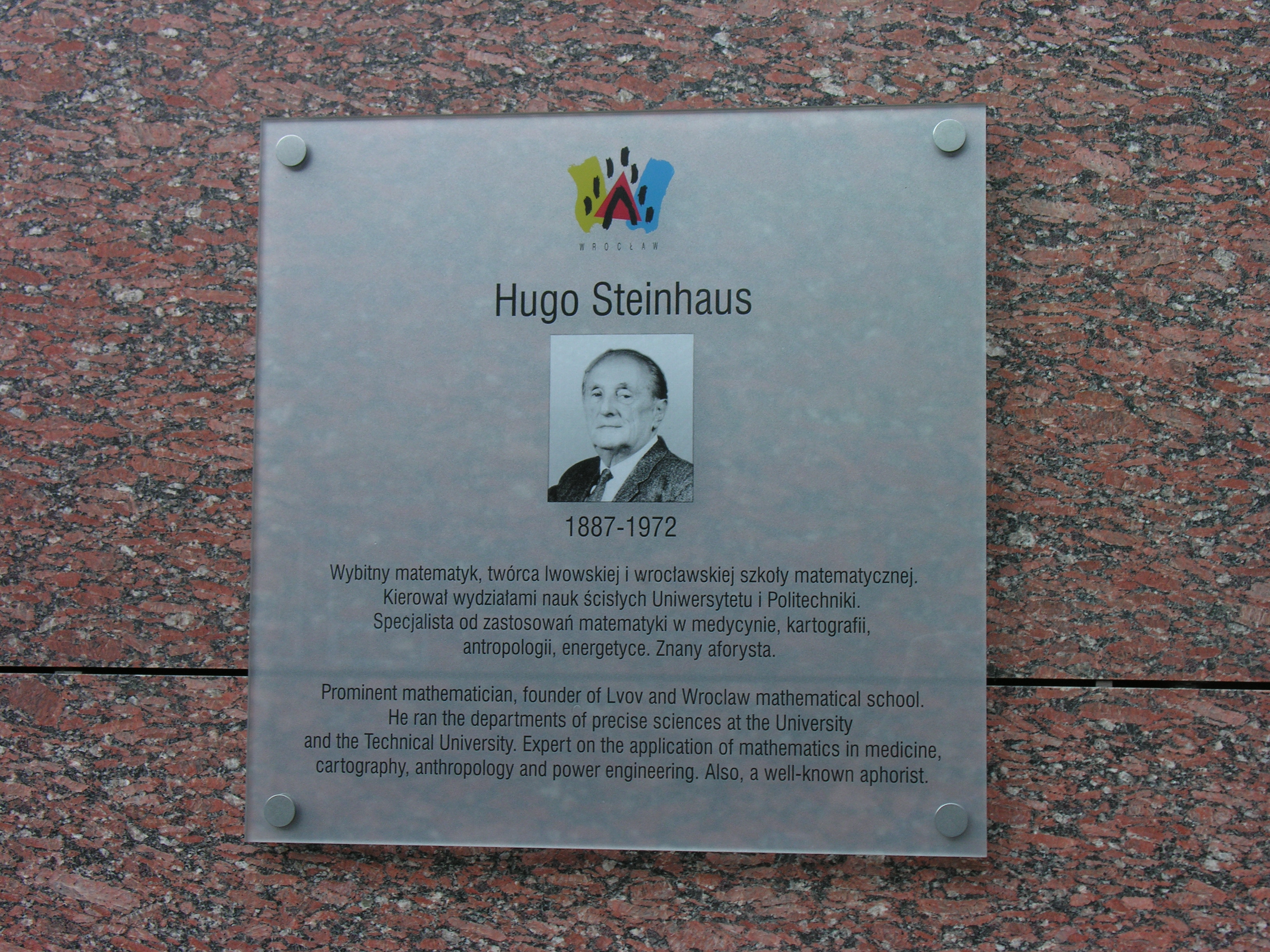 후고 스테인하우스는 1887년 폴란드 야스워에서 태어난 유대인 수학자이다. 괴팅겐 대학교에서 다비트 힐베르트의 지도로 박사 학위를 받았으며, 제1차 세계 대전 당시 폴란드 군단에서 복무했다. 리비우 대학교에서 학문적 경력을 시작하여 르부프 수학 학파를 공동 설립했으며, 바나흐-슈타인하우스 정리, 게임 이론, 확률론 등 다양한 수학 분야에 기여했다. 제2차 세계 대전 중에는 나치의 박해를 피해 숨어 지내면서도 비밀리에 수학을 가르쳤고, 전후 브로츠와프 대학교 교수로 재직하며 '새로운 스코틀랜드 서적'을 통해 르부프 수학 학파의 전통을 이었다. 1972년 브로츠와프에서 사망했으며, 그의 업적을 기려 '2002년, 휴고 슈타인하우스의 해'가 지정되었다.
