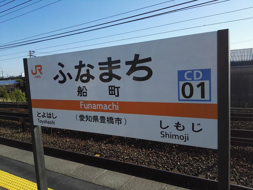 후나마치역은 1927년 신후나마치 정류장으로 개업하여 여객 영업을 시작했으며, 1943년 국유화와 함께 후나마치역으로 개칭되었다. 1987년 국철 분할 민영화로 도카이 여객철도에 승계되었고, 1991년 다이어 개정을 거쳐 도요하시-도요카와 구간 운행 열차가 중심이 되었다. 2010년 TOICA 이용이 가능해졌으며, 2018년 역 번호 "CD01"이 부여되었다. 섬식 승강장 1면 2선을 가진 지상역으로, 무인역이며, 역 건물에는 자동 발권기와 TOICA 개찰구가 설치되어 있다.