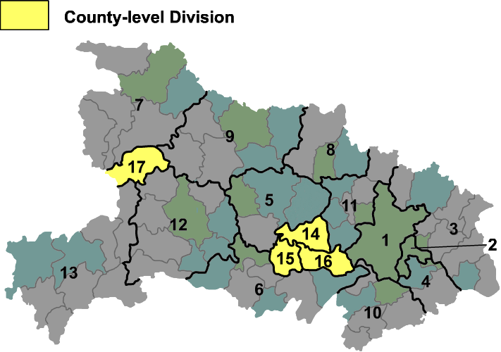 Húbĕi/Prefectures, Cities, Districts and Counties