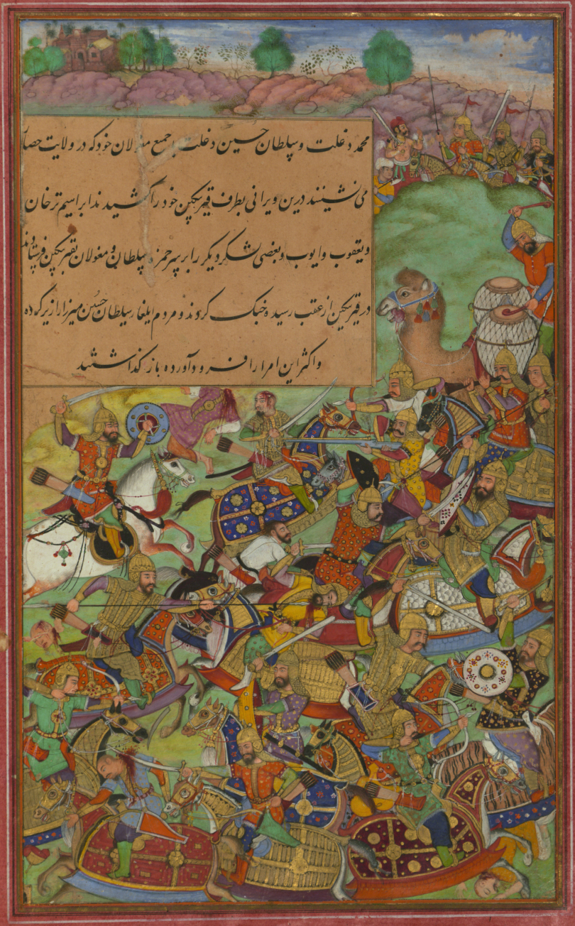 1501년 우즈베크족이 트란스옥시아나를 바부르에게서 빼앗았다. 무함마드 샤이바니 휘하의 우즈베크인들은 호라산을 위협하기 시작했다. 노쇠한 후세인은 바부르의 조언에도 조치를 취하지 않았고, 우즈베크족은 호라산을 약탈했다. 후세인은 뒤늦게 출정을 결심했으나, 1506년 실행 직전 사망했다. 그의 아들 바디와 무자파르 후세인은 제국 계승을 두고 다투었다. 바부르는 호라산을 지키는 것이 불가능하다고 판단해 퇴각했고, 이듬해 후세인의 후계자들은 도망쳤고 무함마드 샤이바니는 헤라트에 입성, 호라산에 대한 티무르 가문의 지배는 끝이 났다.