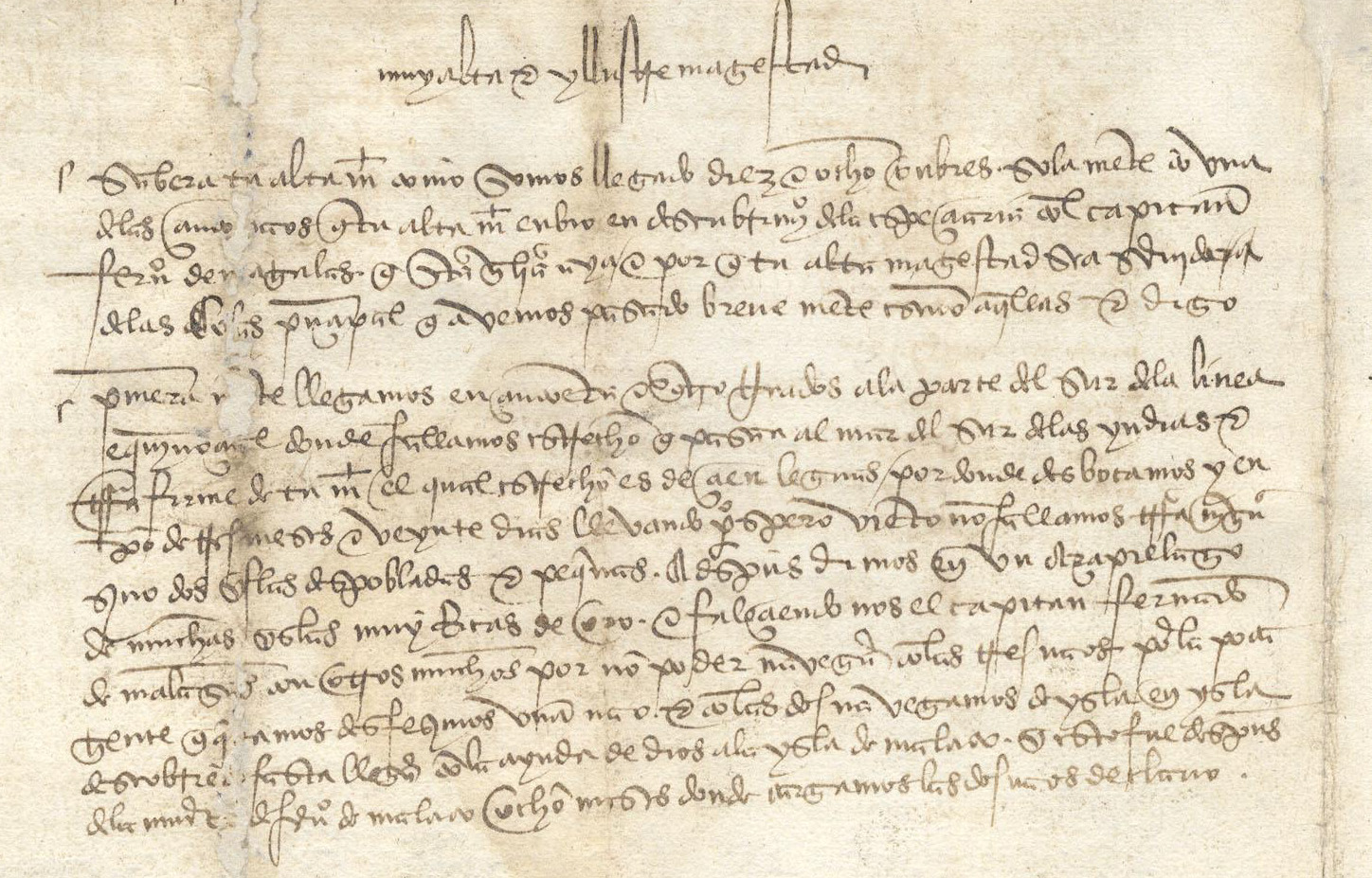 첫 번째 편지는 산루카르 데 바라메다에서 작성되어 왕에게 세계 일주 항해 완료를 알렸다. 상인 특유의 간결한 문체로, 항해 성공을 증명할 서류, 외딴 섬 군주들의 편지, 향신료 샘플, 앵무새 다섯 마리를 가져왔음을 알렸다. 마젤란의 죽음까지의 일은 10줄, 이후 자신의 지휘 아래 일어난 일은 40~45줄로 서술했다. 카보베르데에 구금된 13명을 위해 왕의 노력을 요청하고, 금전적 보상을 요청하면서도 이 업적이 집단적인 결정이었음을 언급했다.[47]