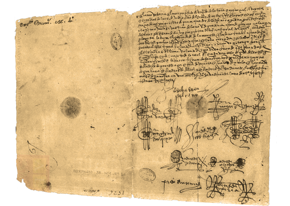 유언장의 증인으로는 마르틴 가르시아 카르키사노(Martín García Karkizano), 안드레스 고로스티아가(Andrés Gorostiaga), 에르난도 헤바라(Hernando Gebara), 안드레스 우르다네타(Andrés Urdaneta), 후아네스 사발라(Juanes Zabala), 마르틴 우리아르테(Martín Uriarte), 안드레스 알레체(Andrés Aletxe)가 있었다.[46]