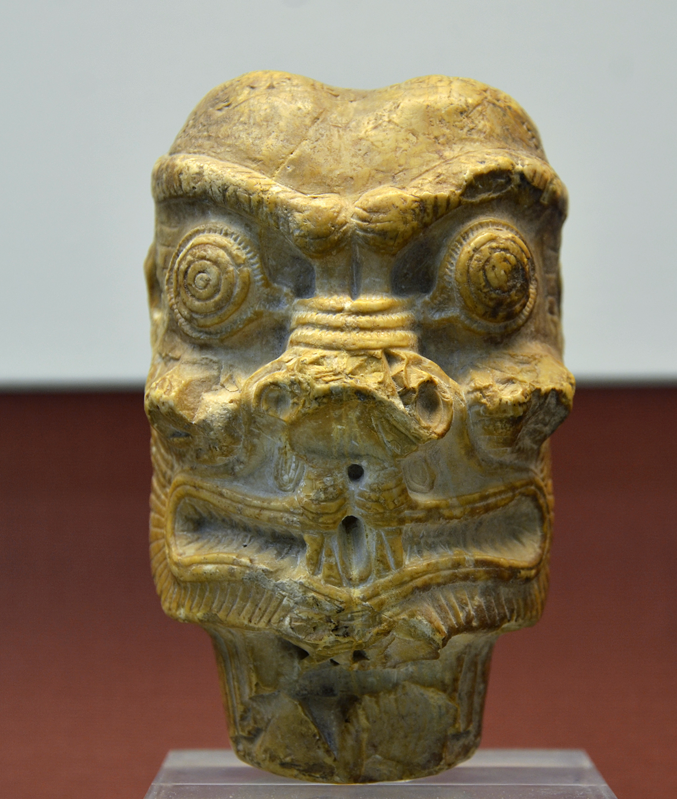 또한 남아있는 조각상의 대부분에서, 얼굴은 동물의 창자와 같은 한 개의 관이 꼬여있는 형태로 표현되어, 보는 이에게 불길한 인상을 준다.[10]