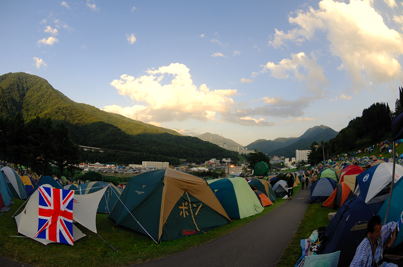 苗場 프린스 호텔 뒤편, 스키장의 광대한 사면을 이용하여 행사 숙박객을 위한 텐트 설치 구역이 마련되어 있다. 매년 약 1만 7000명이 이곳에서 텐트를 치고 숙박하고 있다. 여성 전용 구역과 화장실, 샤워 시설, 캠프에 관한 상담소와 식사처도 완비되어 있다. 2010년부터 새롭게 Pyramid Garden이라는 휴식 공간이 등장했다.