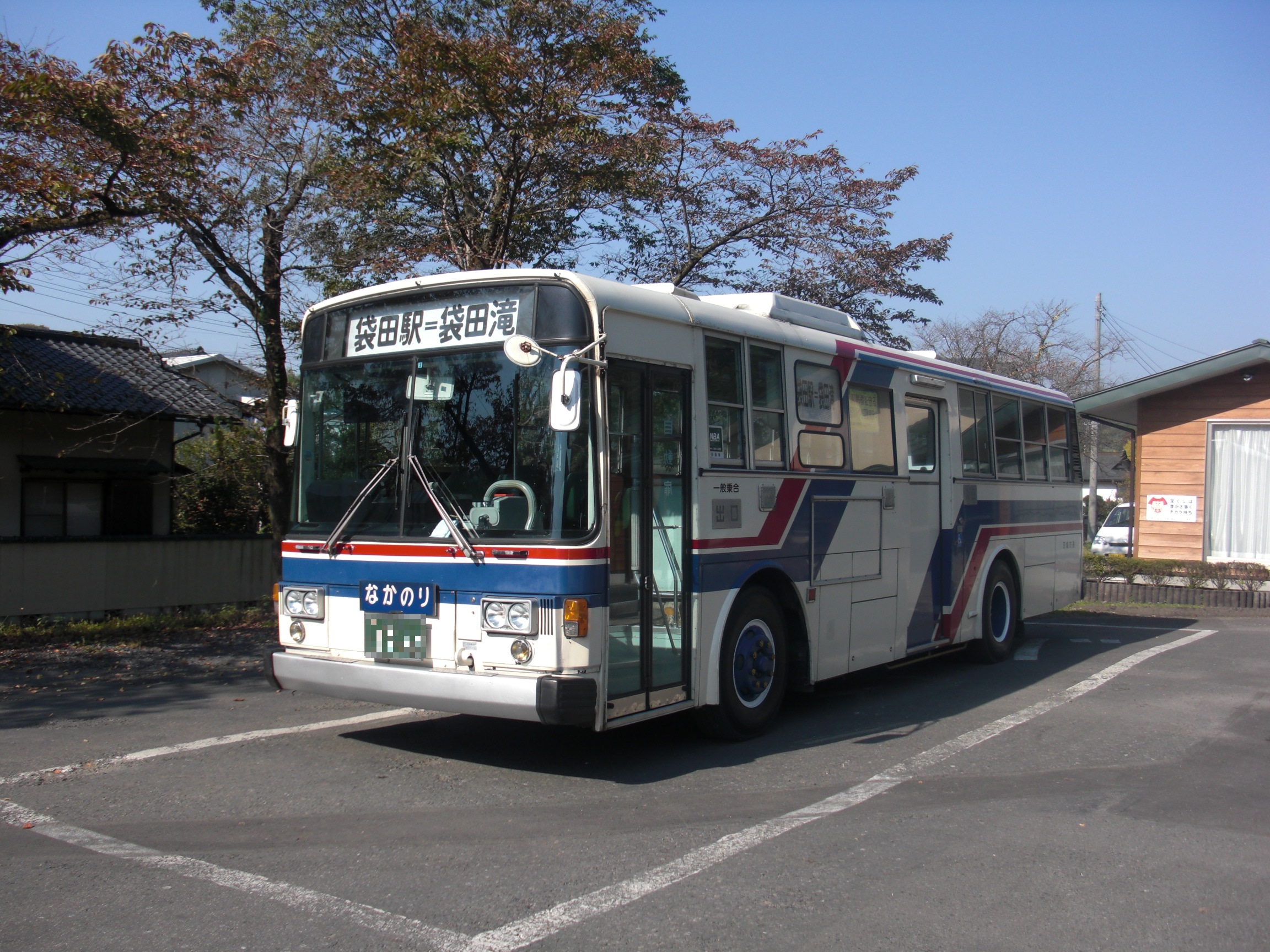 - 후쿠로다 폭포행 노선 버스가 왕복 운행하고 있다. 열차 도착 시간에 맞춰 출발 시각이 설정되어 있다.