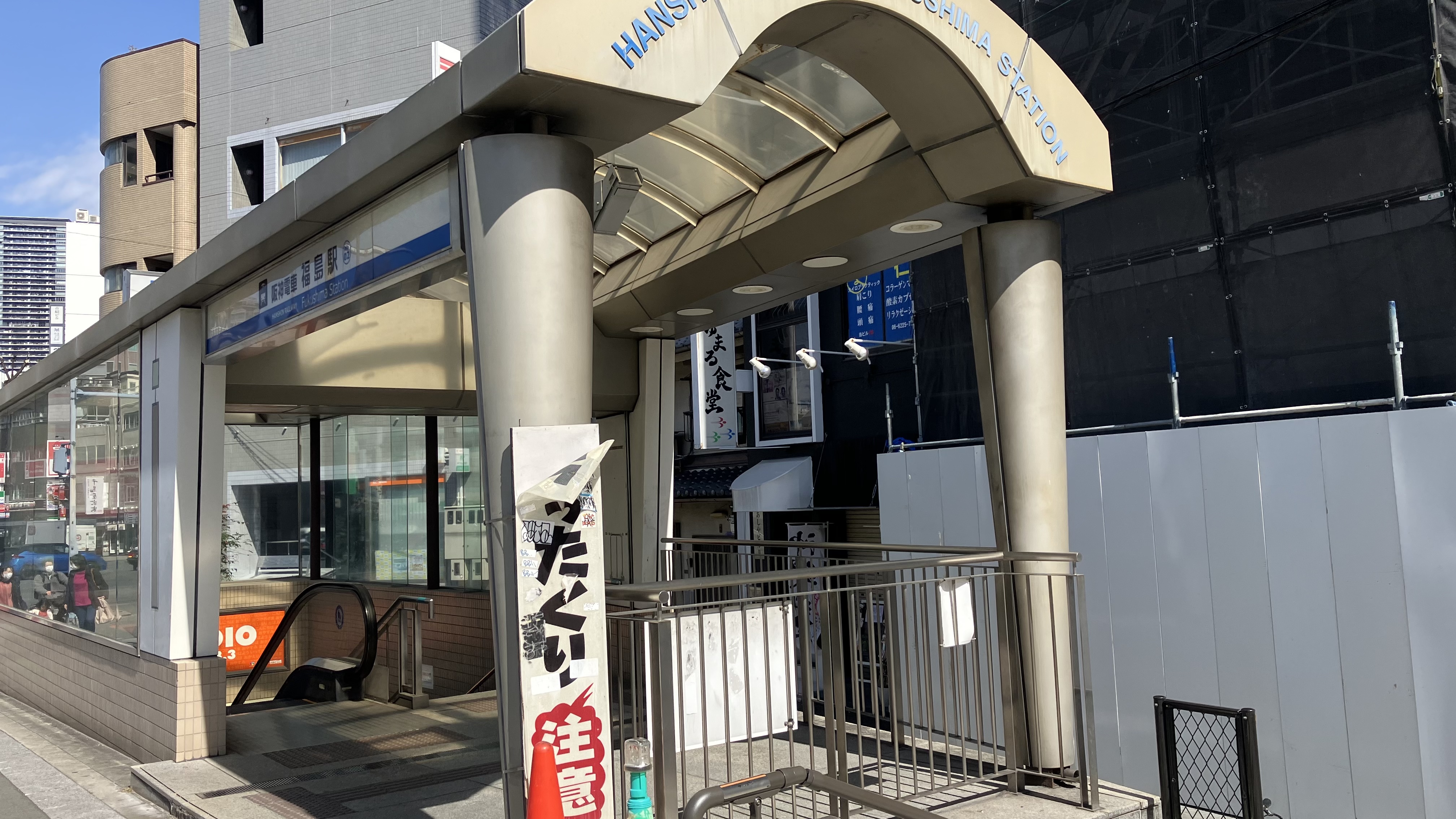 노다한신역은 오사카부 후쿠시마구에 위치한 오사카 메트로 센니치마에선의 지하역으로, 한신 본선 노다역, JR 도자이선 에비에역으로 환승 가능하며, 인접역은 다마가와역이다. - 후쿠시마구의 건축물 - 노다한신역