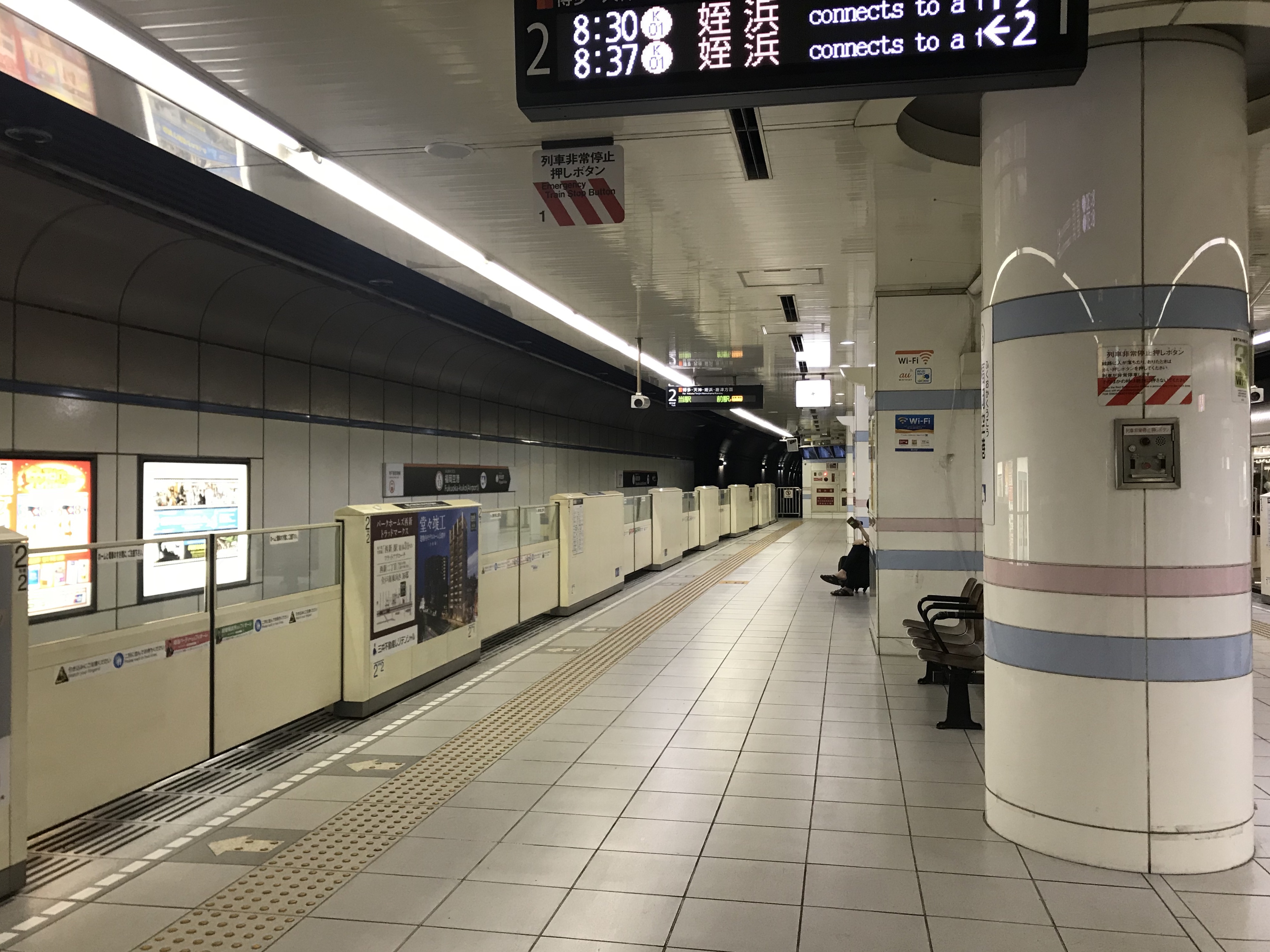 지하 2층 | 1번 승강장 ←■ 공항선 메이노하마・가라쓰 방면 (히가시히에) |