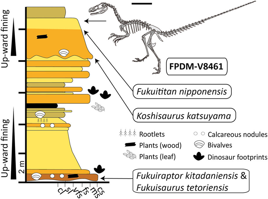 후쿠이랍토르 화석이 발견된 키타다니 층에서는 다른 척추동물 화석들도 보존되어 있다.[1] 이 지층에서 화석이 발견되어 이름이 붙여진 종으로는 조반류 후쿠이사우루스 테토렌시스[13], 용각류 후쿠이티탄 니포넨시스[14], 하드로사우루스류 코시사우루스 카츠야마[15], 수각류 후쿠이베나토르 파라독수스[16], 조류 후쿠이프테릭스 프리마[17] 등이 있다.