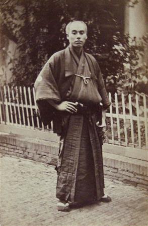 1862년, 유럽 최초의 일본 대사관의 일원으로 위트레흐트에서 포즈를 취한 후쿠자와 유키치