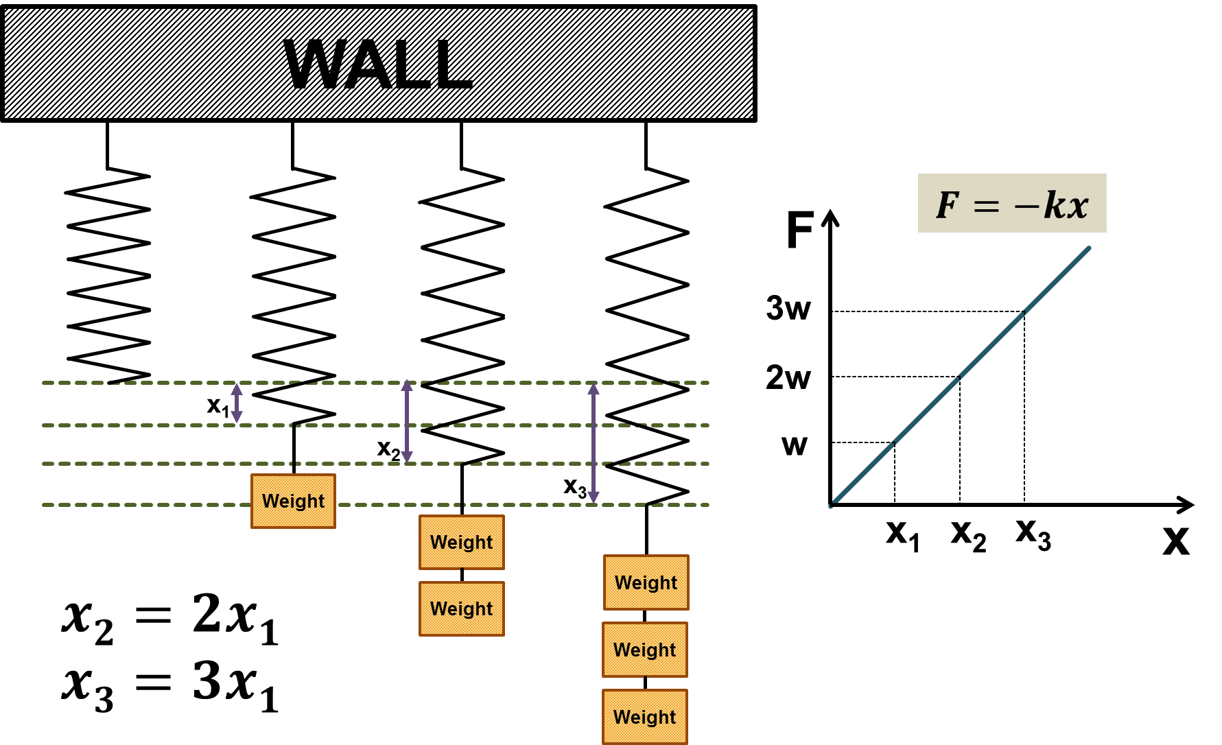 이 공식에 따르면, 변위 에 대한 적용된 힘 의 그래프는 원점을 지나는 직선이며, 기울기는 이다.