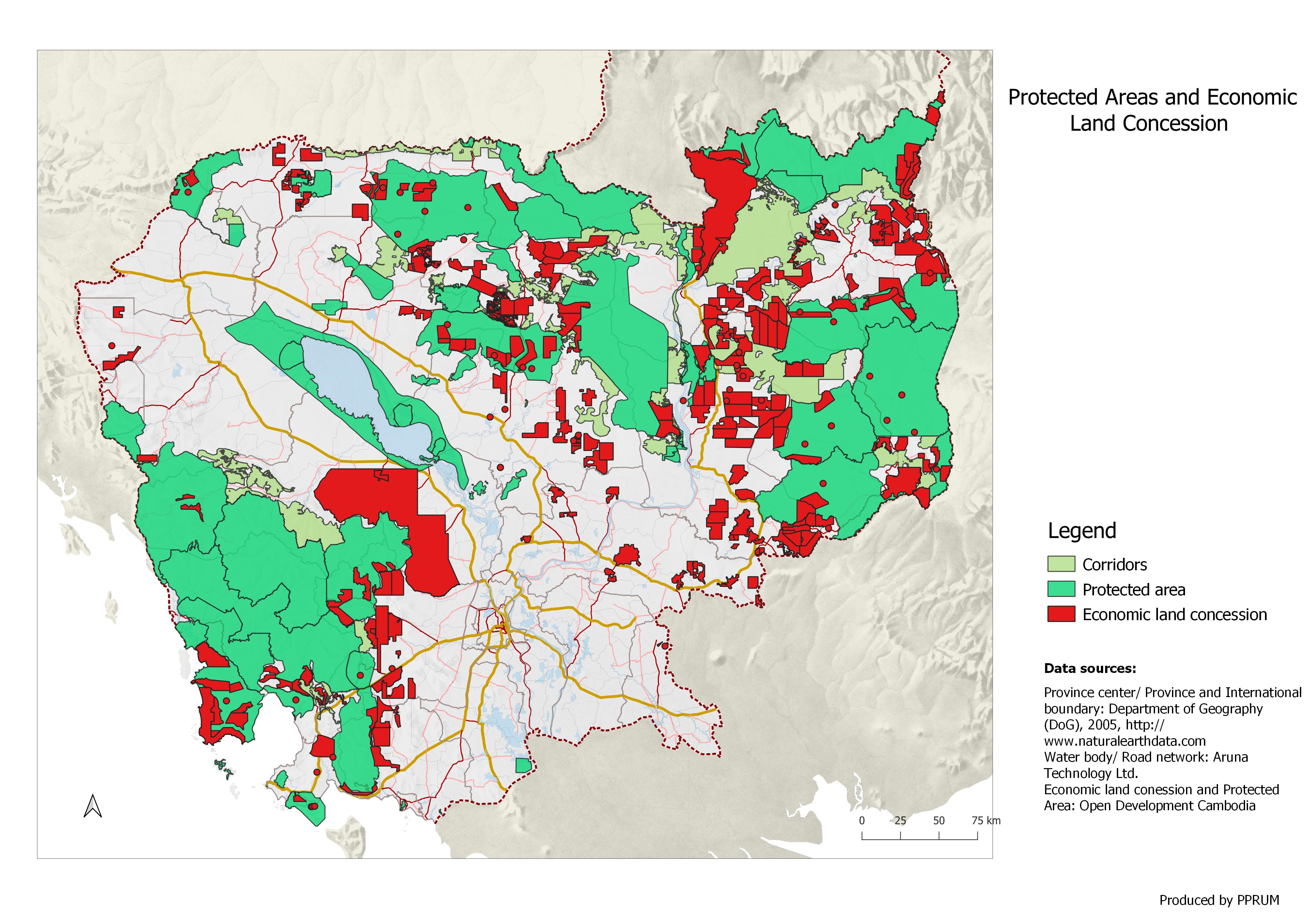 훈 센은 캄보디아에서 "표범 가죽 토지 개혁"이라는 토지 개혁을 시행했다.[80] 2007년에서 2008년 사이, 훈 센 정부는 캄보디아 총 토지 면적의 45%를 주로 외국 투자자들에게 임대하여 15만 명 이상의 캄보디아인이 강제 퇴거 위기에 처하게 했다. 양보의 일부는 보호 야생 동물 지역이나 국립공원에 해당하며, 이는 전국적인 삼림 벌채를 야기했다.[81][82][13][83] 2015년 기준으로 캄보디아는 세계에서 가장 높은 산림 손실률 중 하나를 기록했다.[84] 이러한 토지 매각은 정부 부패로 여겨졌으며, 수천 명의 시민들이 강제 퇴거당하는 결과를 초래했다.[85][86] 알리스 베반(Alice Beban)에 따르면, 토지 개혁은 캄보디아의 연고 정치를 강화했을 뿐 토지 소유권 안보를 제공하지 못했다.[80]