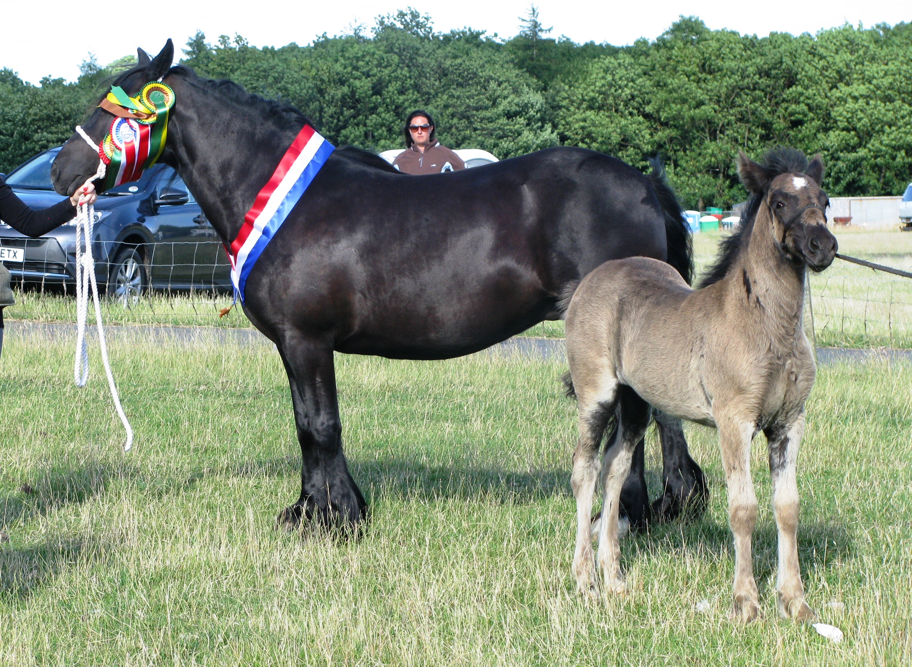 검은색 망아지는 보통 쥐색으로 태어나지만, 더 어두운 색조를 띨 수도 있다. 많은 망아지가 태어날 때 원시 반점을 가지고 있어 일부 검은색 망아지는 그룰로나 짙은 갈색으로 오인되기도 한다. 그러나 검은 망아지의 원시 반점은 검은색 털이 자라면서 사라진다. 검은색 망아지는 태어날 때 어두운 피부와 눈을 가지고 있으며, 눈과 주둥이 주변에 흰 털이 있는지 확인하여 회색이 될 것인지 확인할 수 있다. 회색 리피자너 말은 종종 검은색으로 태어난다.