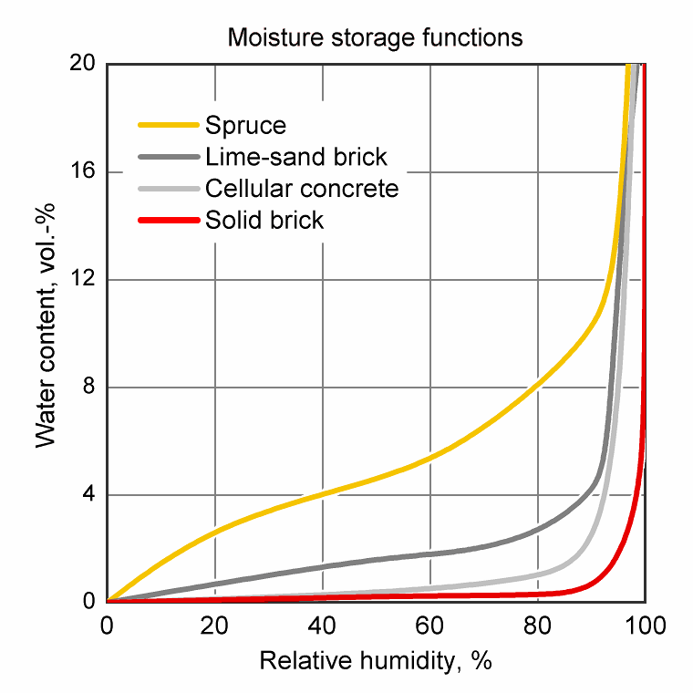 흡습성 재료가 보유하는 수분의 양은 일반적으로 상대습도에 비례한다. 이 정보가 포함된 표는 많은 공학 편람에서 찾을 수 있으며, 다양한 재료 및 화학 물질 공급업체에서도 제공된다.