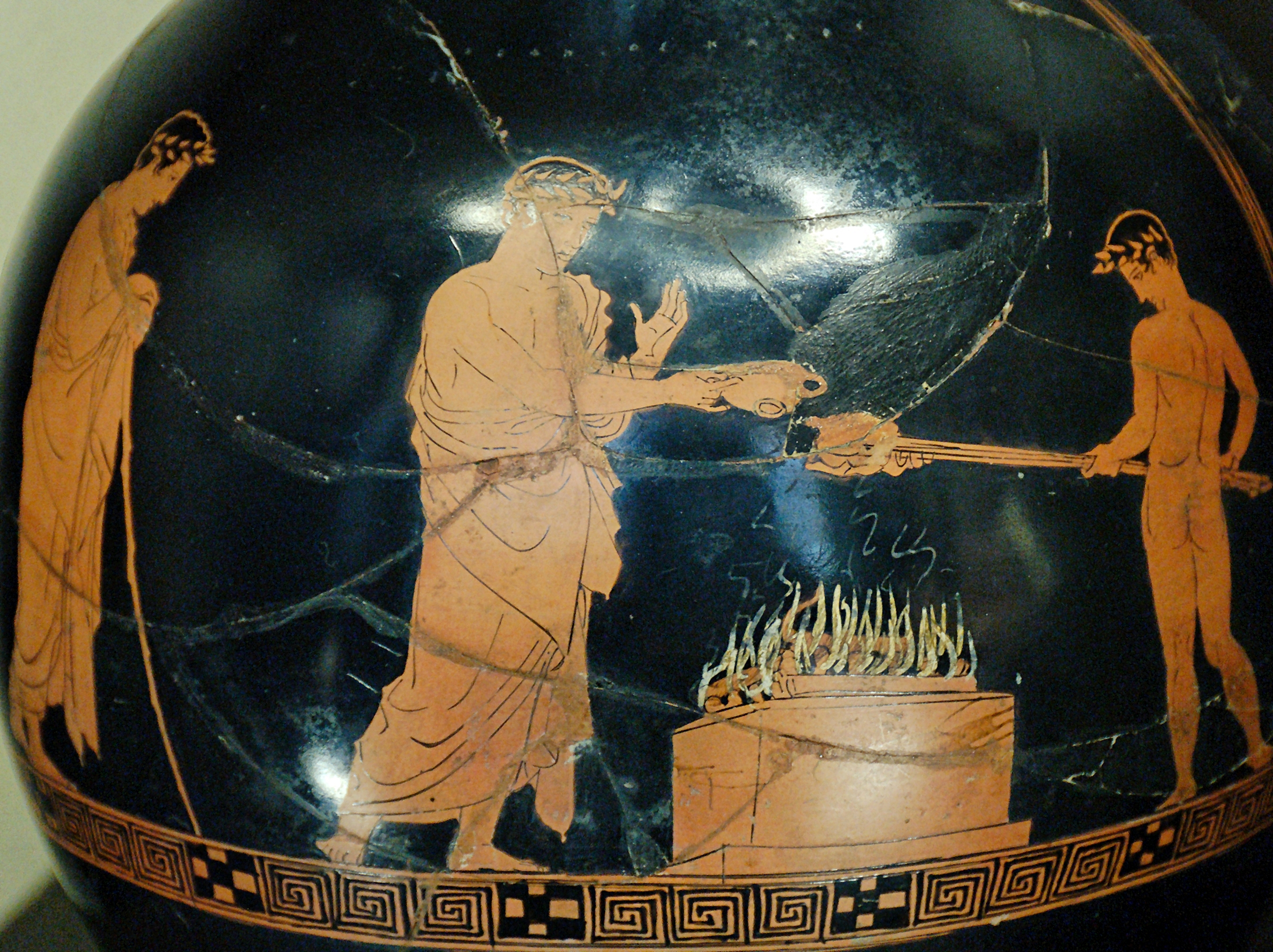 인도 국경 근처 마을인 바리야푸르에서는 5년마다 힌두교의 여신 가디마이를 기리는 가디마이 축제가 열린다. 이 축제에서는 물소, 염소, 비둘기 등이 희생물로 바쳐진다. 2009년에는 약 30만 마리, 2014년에는 약 20만 마리의 동물이 축제장에서 칼 등으로 살해되었다[38]。동물보호단체 등은 잔혹한 살해 방법에 대해 강하게 비판하였다. 2015년에는 힌두 사원 측이 금지령을 내렸고, 2016년에는 네팔 대법원도 희생을 중단하라고 명령했지만, 수 세기 동안 이어져 온 관습은 쉽게 끝나지 않아 2019년 11월에 열린 축제에서도 희생물을 대량으로 살해하는 광경이 반복되었다[39]。6. 4. 그리스 신화