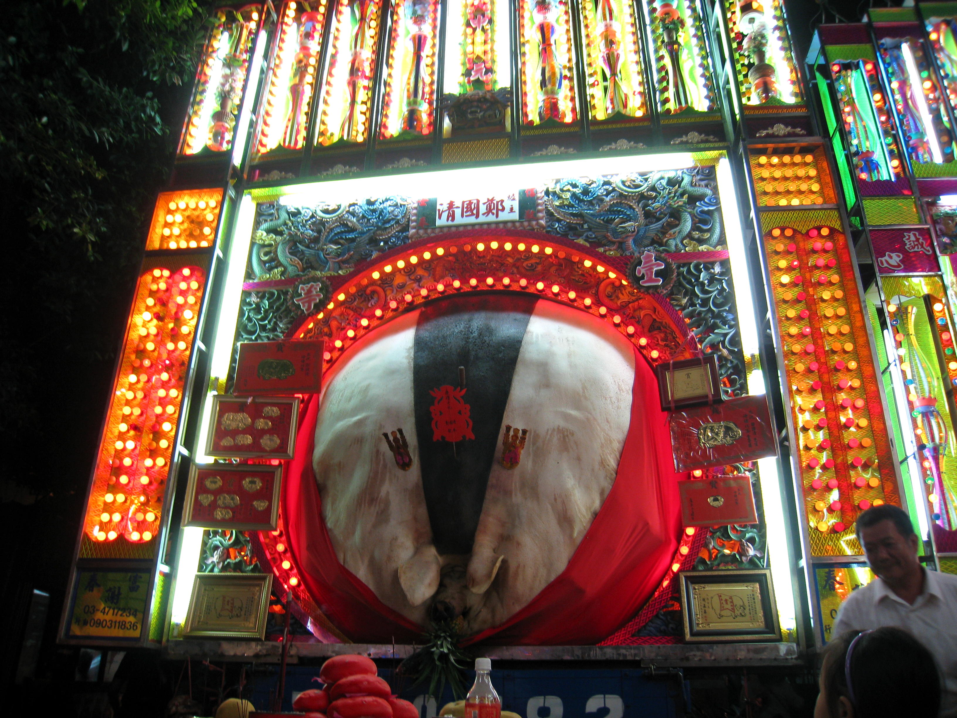 중국 민간 신앙 신자들은 돼지고기, 닭고기, 오리고기, 생선, 오징어, 새우 등을 제물로 사용한다.[1] 상위 신을 채식주의자로 믿는 사람들을 위해 일부 제단은 2층으로 구성되어 있는데, 위층에는 채식 음식을, 아래층에는 상위 신의 병사들을 위한 동물 제물을 놓는다.[1] 중원절과 같은 초자연적인 영혼과 유령을 위한 의식에서는 통째로 염소나 돼지를 사용하기도 한다.[1] 대만과 차오저우 지역에서는 희생 제물로 바칠 가장 무거운 돼지를 기르는 대회가 열린다.[1]4. 3. 기독교