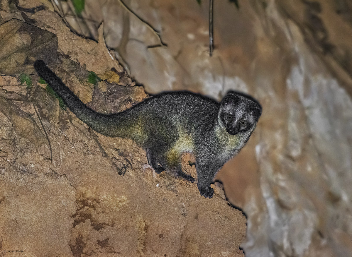 형태학적으로 다른 사향고양이와 유사하지만, 몸에 뚜렷한 반점이나 줄무늬는 없다. 꼬리는 머리와 몸통 길이를 합친 길이의 3분의 2 이상으로 긴 편이다.[7] 몸길이는 대략 51cm에서 76cm,[27] 꼬리 길이는 40cm에서 60cm,[27] 몸무게는 3.6kg에서 6kg 정도이다.[27] 고양이와 비슷한 체형이지만 코가 더 길다. 수컷과 암컷의 몸 크기 차이는 거의 없다.[27]