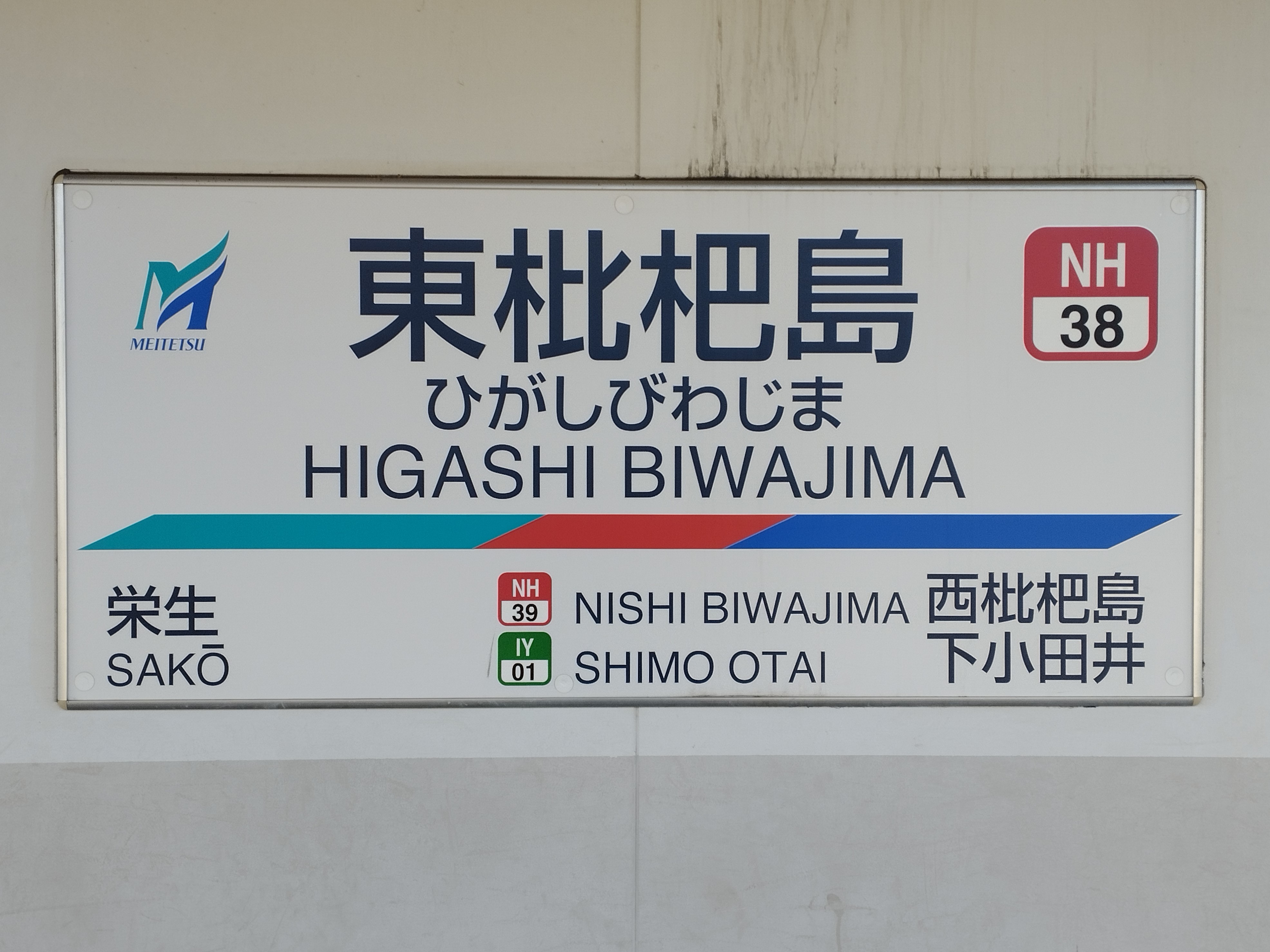 : 사코(NH37) - '''히가시비와지마 역(NH38)''' - (비와지마 분기점) - 니시비와지마(NH39)/시모오타이(IY01)(견산선)