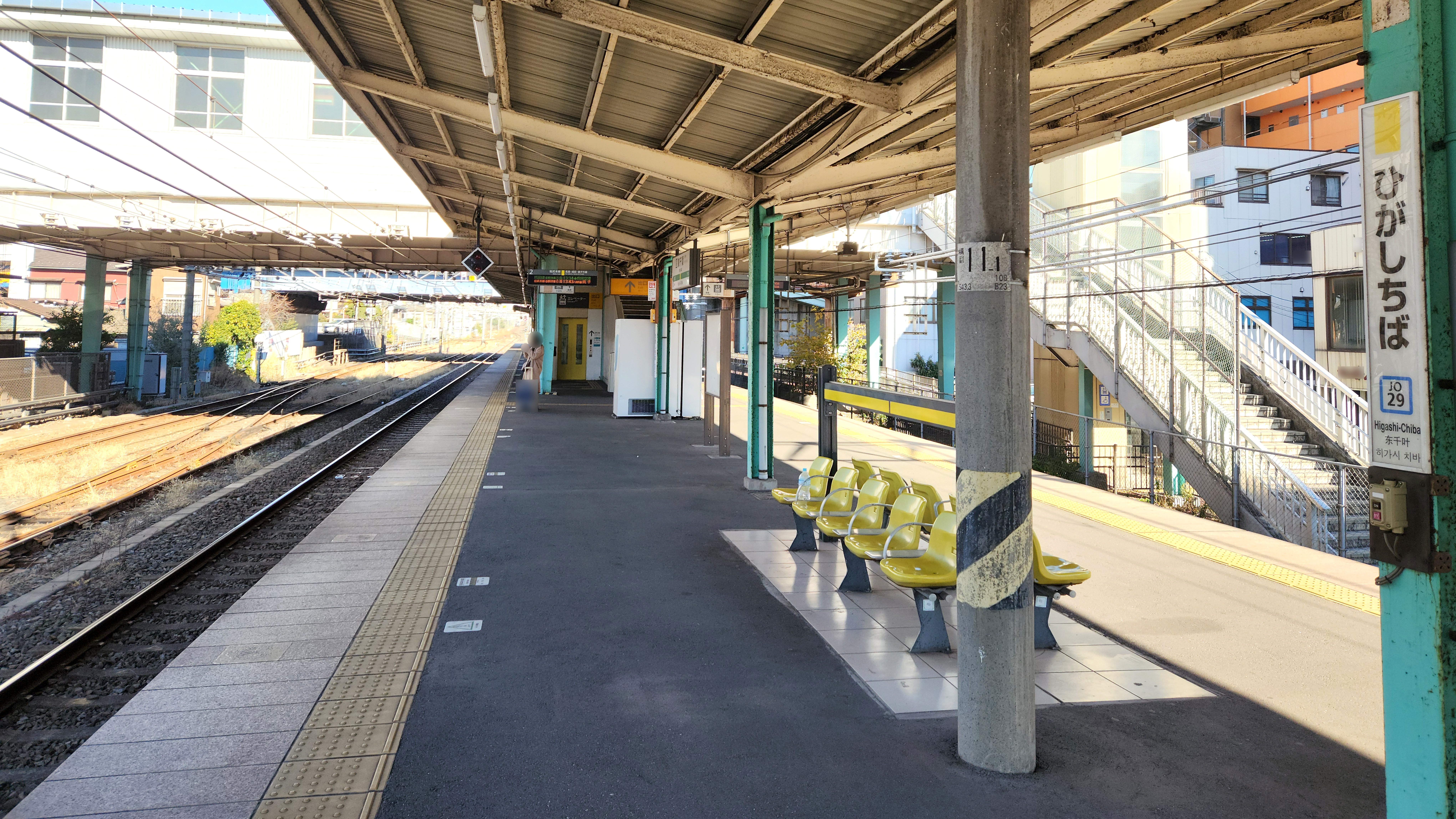 히가시치바역은 소부 본선과 나리타선이 운행되는 역이다. 이 역은 도쿄역에서 40.1km 떨어져 있다.