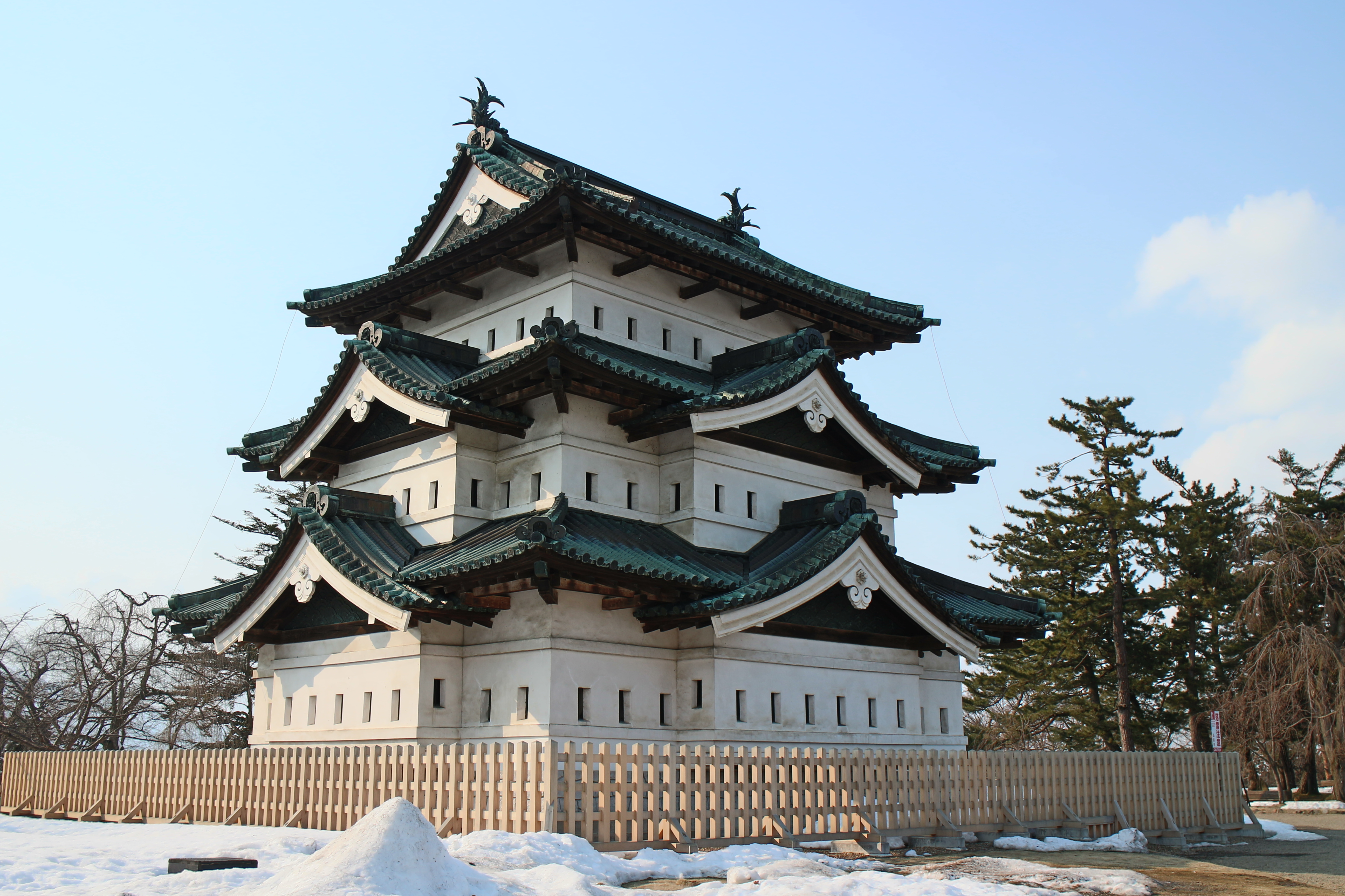 쓰가루 평야에 위치한 히로사키성은 해자, 석벽, 성루 등 성곽의 전체적인 모습이 폐성 당시의 원형을 간직하고 있어 귀중한 문화재로 평가받는다. 천수는 에도 시대 후기에 재건되었으며, 망루와 성문들은 나라의 중요문화재로 지정되어 있다.[1]