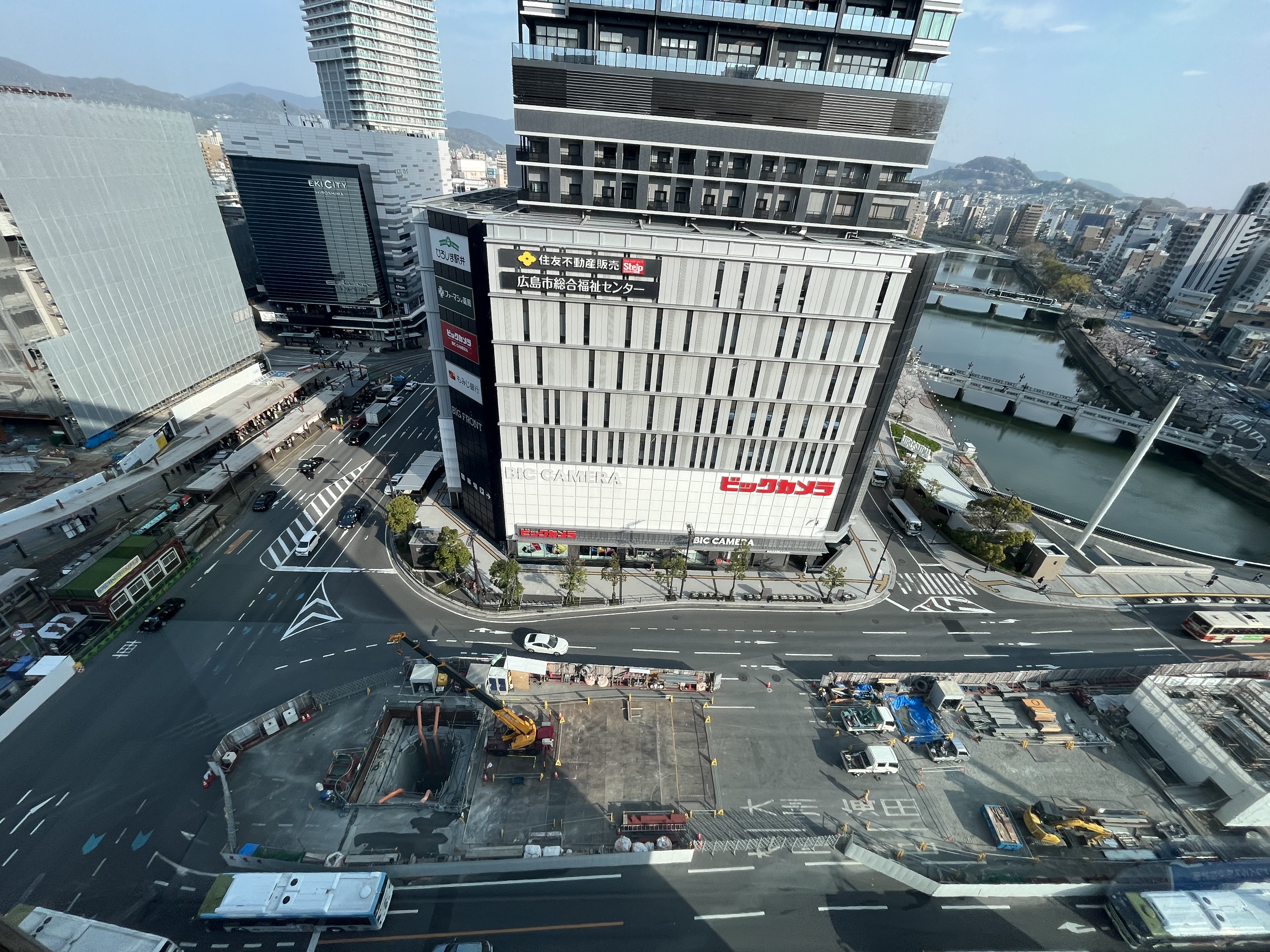 히로시마시 중심부인 하치보리와 가미야초, 그리고 히로시마 평화 기념 공원은 남쪽 출구 쪽에 위치해 있다.