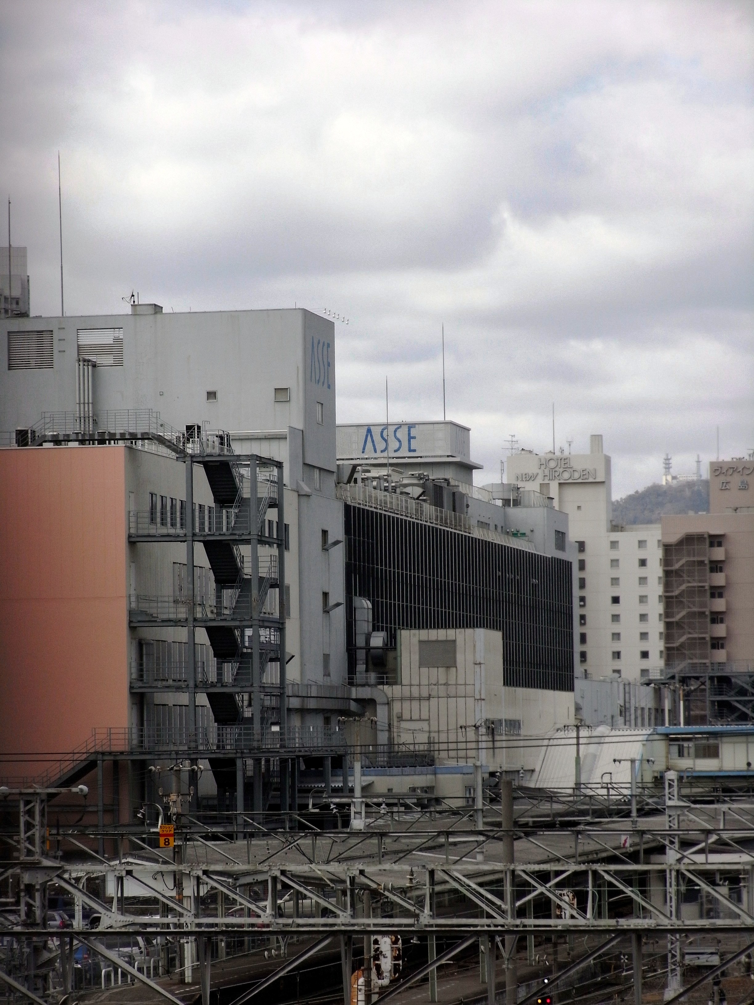 히로시마 JP 빌딩 서쪽 오스가정의 일각은 재개발이 손대지 않은 채 옛 모습의 거리가 남아 있는 음식점 거리가 되어 있으며, "'''에키니시'''"라는 애칭으로 친숙하다.[110] 2021년에는 "에키니시"에서 화재가 발생했다.[111]