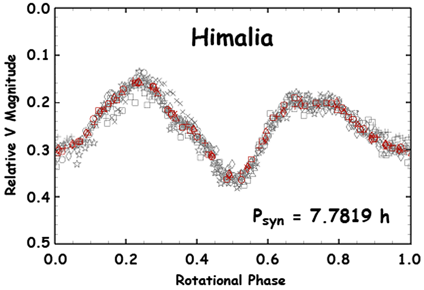 히말리아의 자전 주기는 7시간 46분 55초(±2초)이다.[24][30]