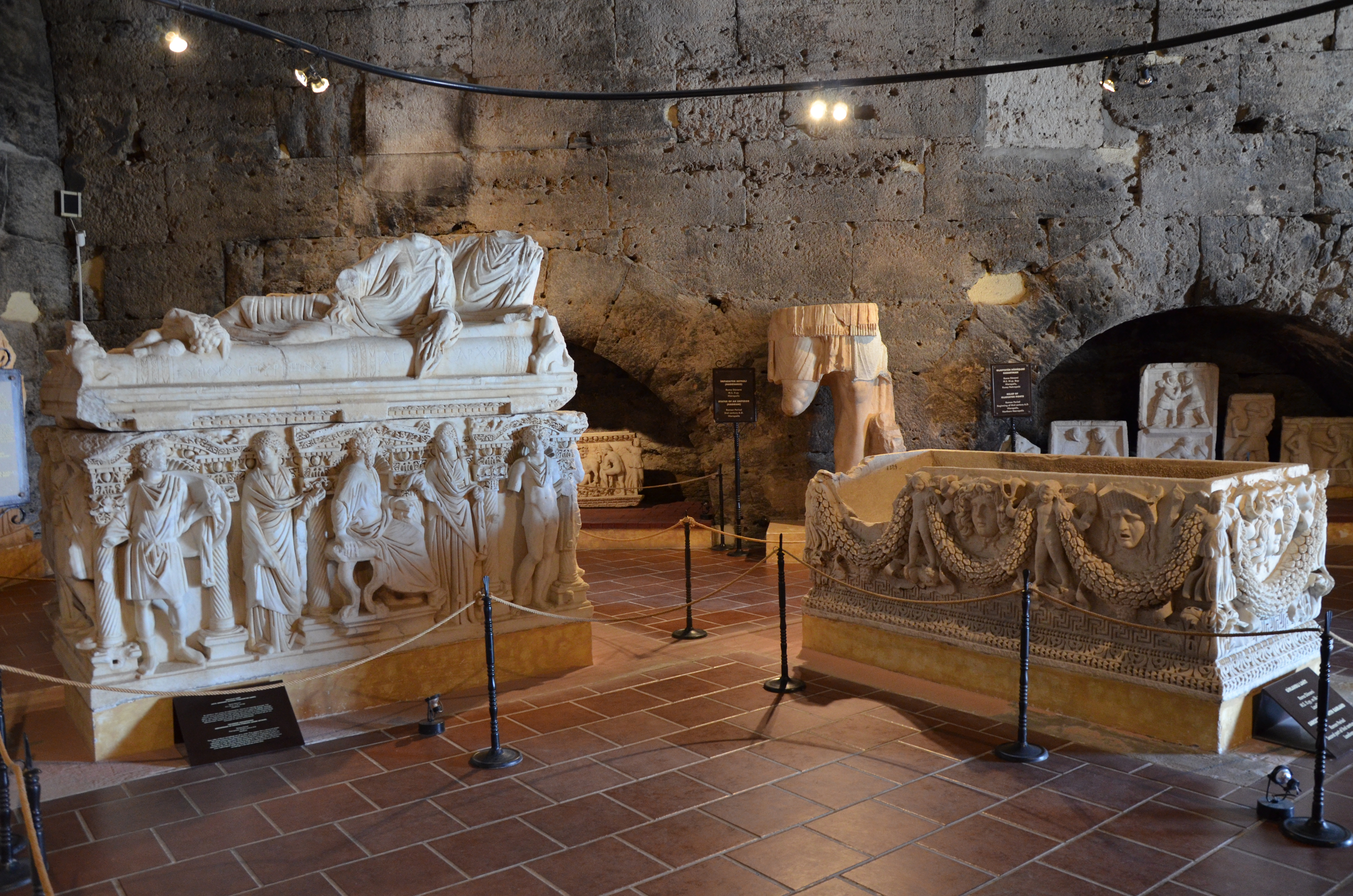 - 극장: 기원후 60년 지진 이후 하드리아누스 황제 통치 시기에 건설되었으며,[19] 셉티미우스 세베루스 황제 시대에 더욱 화려하게 개보수되었다. 7세기 지진으로 파괴되기 전까지 수렵극과 검투사 경기 등이 열렸던 곳이다.