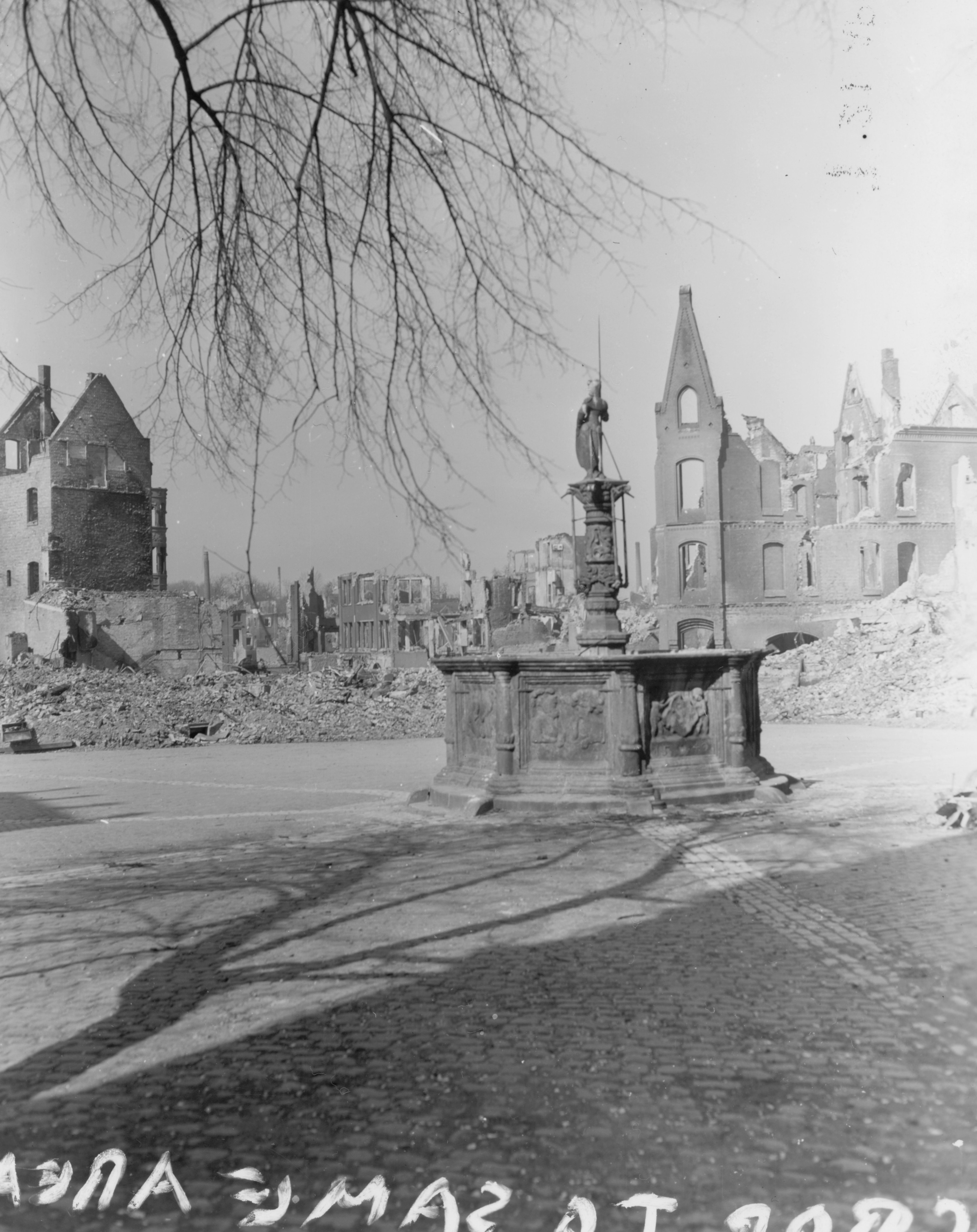 전쟁 중 귀중한 세계 문화 유산은 지하 저장고에 숨겨져 있었다. 전쟁과 그 여파 이후, 주택의 신속한 건설이 우선시되었고, 콘크리트 구조물이 파괴된 역사적인 건물을 대체했다. 주요 교회들(그 중 두 곳은 현재 유네스코 세계 문화 유산)은 전쟁 직후 원래 스타일로 재건되었다. 1946년에는 한자 동맹에 가입했으며, 제2차 세계 대전으로 파괴되었던 역사적 건조물을 포함한 도시의 대부분이 재건되어 옛 중세풍의 거리 풍경도 재현되었다.[26]