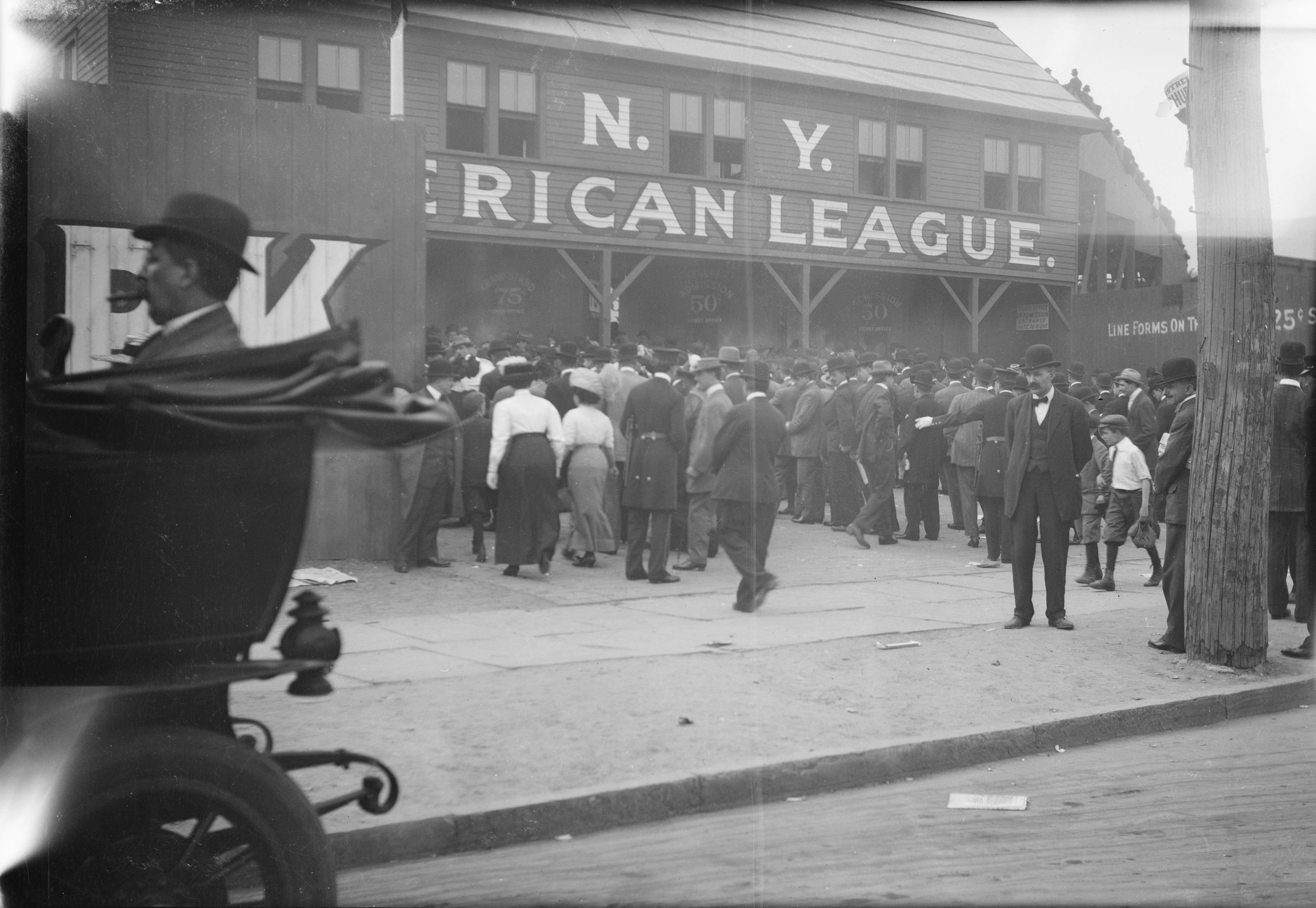 아메리칸 리그 야구는 1903년 뉴욕시에 첫발을 내디뎠다. 도박사 프랭크 J. 패럴과 전 뉴욕시 경찰청장 윌리엄 S. 데버리가 볼티모어 오리올스 프랜차이즈를 1.8만달러에 매입하여 볼티모어에서 뉴욕으로 이전하면서 시작되었다. 이들은 브로드웨이 서쪽 165번가와 168번가 사이에 위치한 부지에 약 16,000명의 관중을 수용할 수 있는 목조 야구장을 급하게 건설했다. 이 부지는 당시 99 Fort Washington에 위치했던 뉴욕 농아 학교와 대각선으로 마주보고 있었으며, 뉴욕 맹인 협회의 중개로 10년 임대 계약을 통해 확보되었다.[2]
