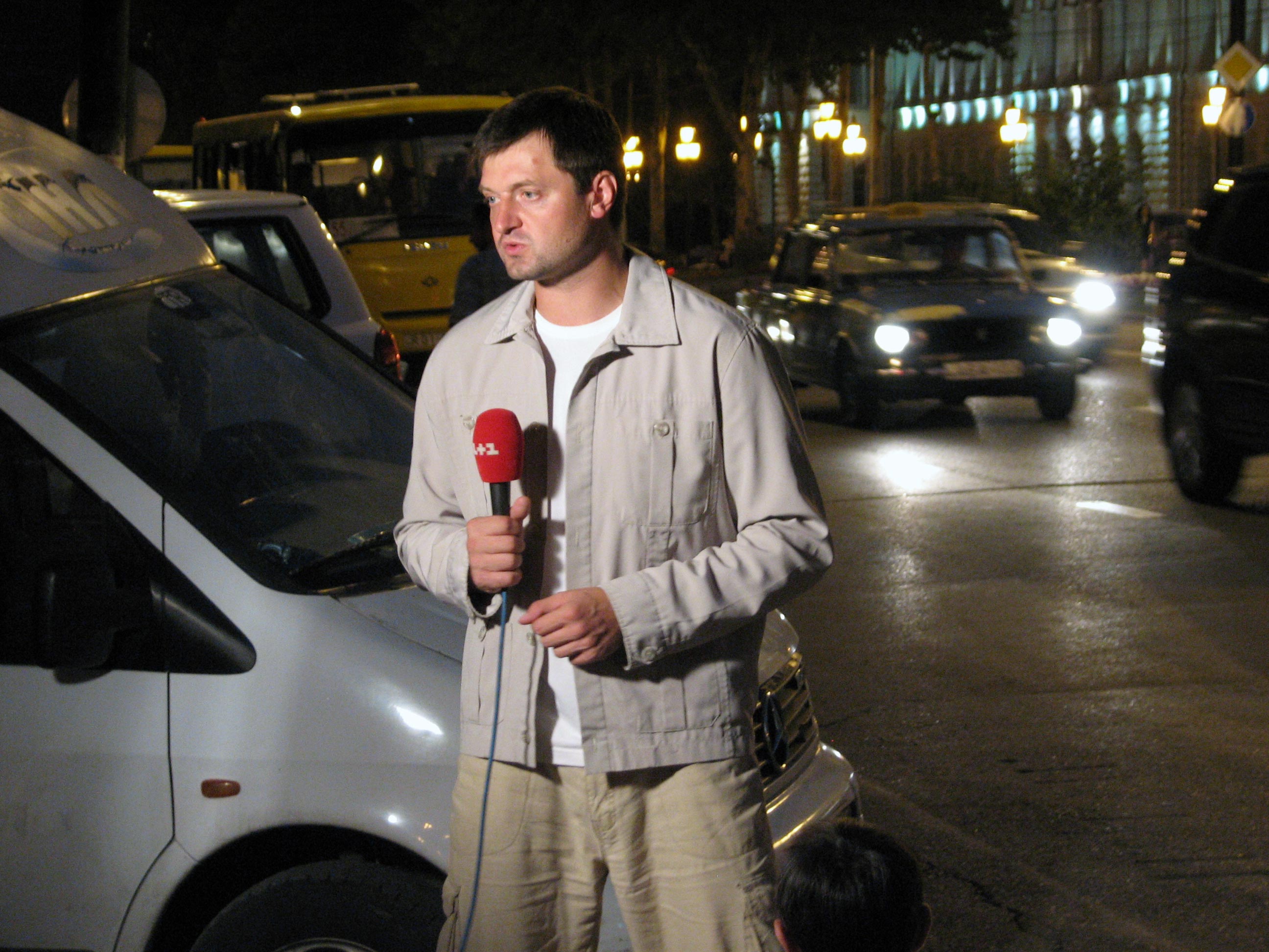 러시아-조지아 전쟁 당시 트빌리시의 국회 밖에서 생방송을 진행하는 1+1의 기자의 모습을 담은 사진은 다음과 같다.