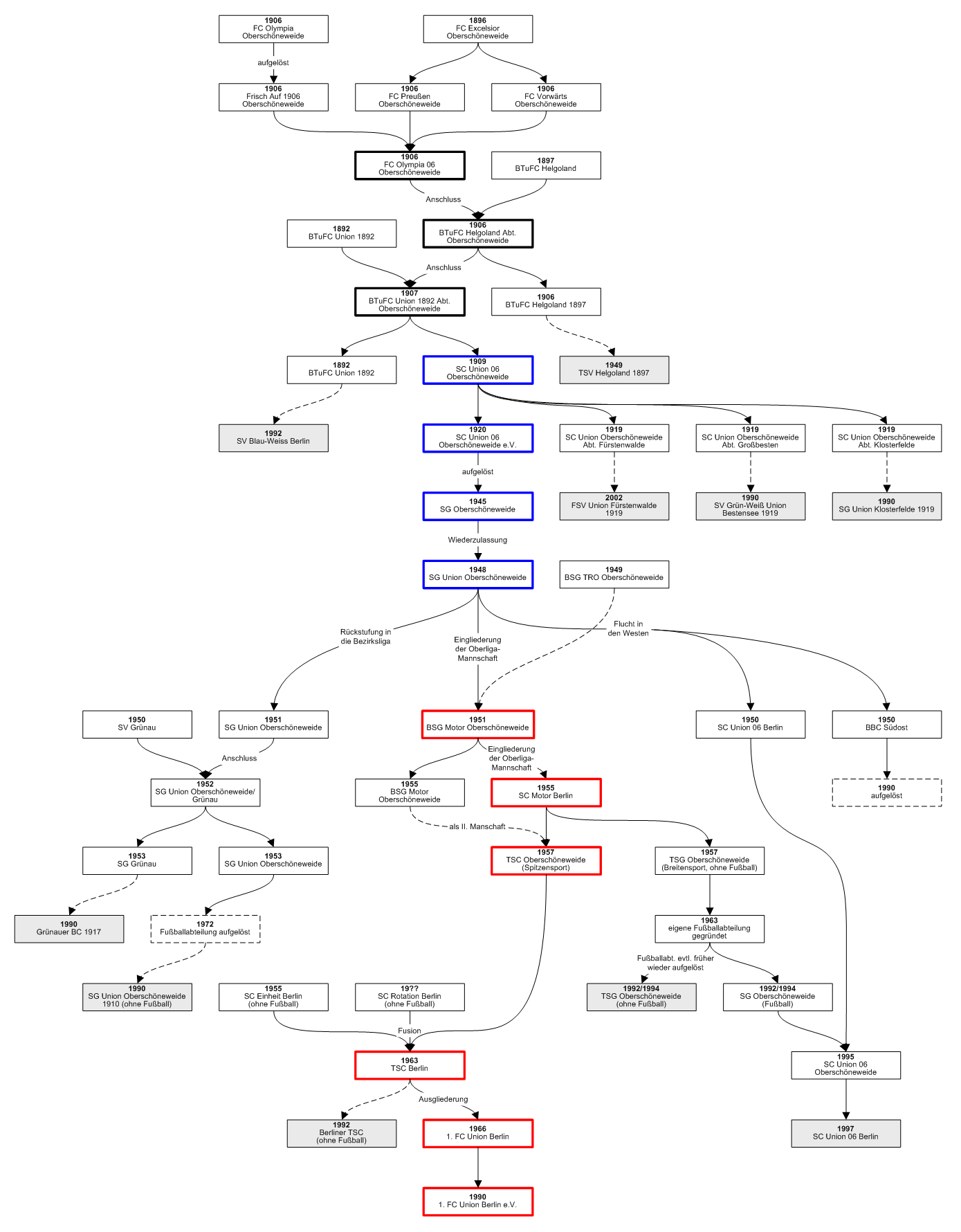 동쪽에 남은 선수들은 SG 유니온 오버쉐네바이데로 활동을 이어갔고, 서방으로 도망쳐 SC를 결성한 다수의 선수들은 베를리너 발슈필-클럽 쥐트오스트를 조직했다.[11]