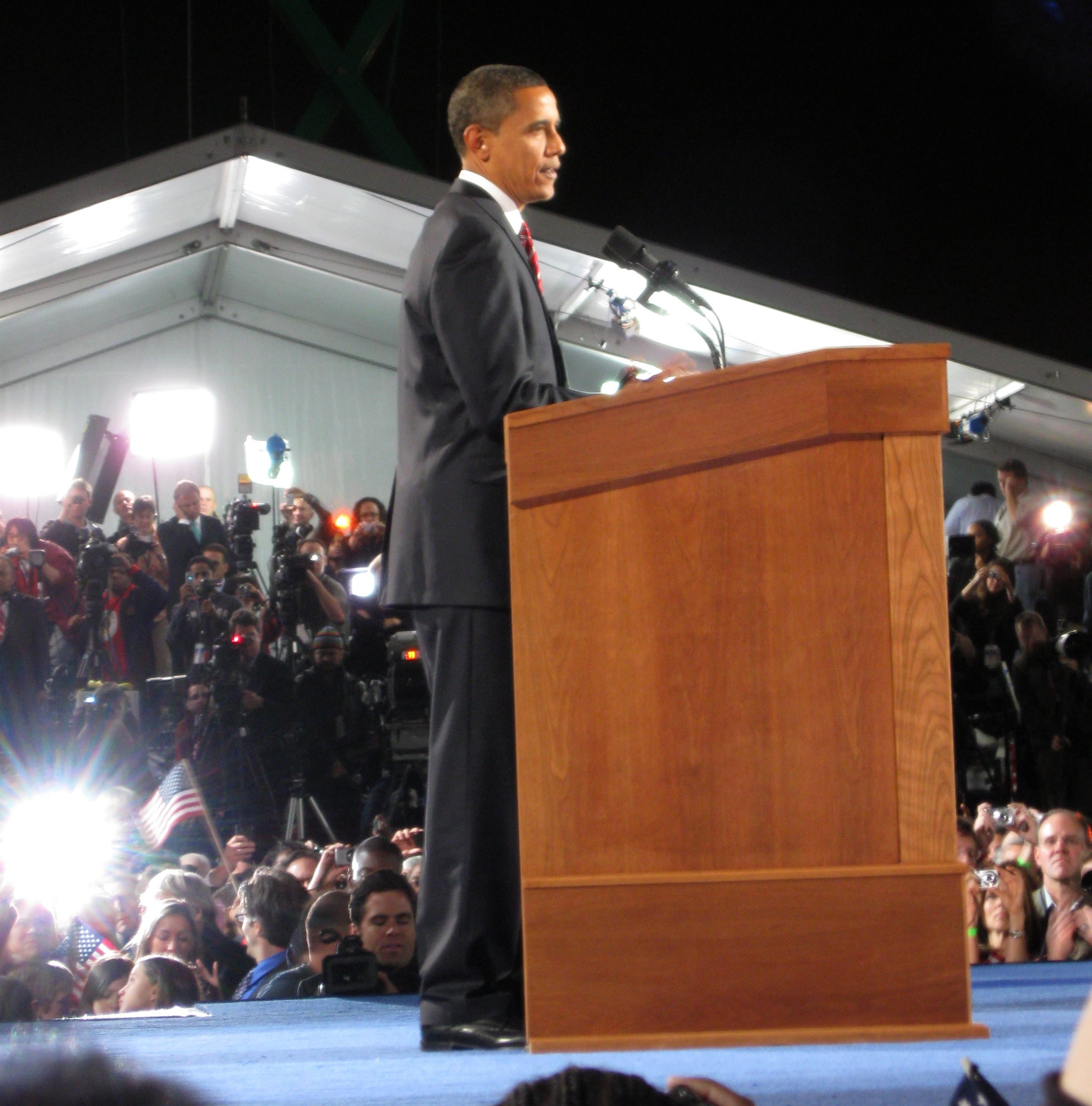 2008년 미국 대통령 선거에서 승리 선언을 하는 버락 오바마.