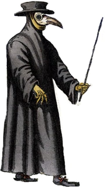 인물은 처음에 그림자에 가려져 있지만, 점차 밝아지면서 흑사병 의사 복장을 한 모습이 드러난다. 그는 손짓과 함께 손바닥에서 빛을 내뿜는다.[4] 손가락으로 세 개, 한 개, 두 개 순서로 신호를 보낸다.[4] 이후, 카메라가 멀어지면서 팔을 벌린 인물의 모습이 삽입된다. 점프 컷 이후, 인물 주변의 조명이 개선되어 흑사병 의사 복장이 더 명확하게 보인다. 인물은 손바닥에서 깜박이는 빛을 내뿜고, 이에 맞춰 신음 소리가 사운드트랙에 추가된다.[4]