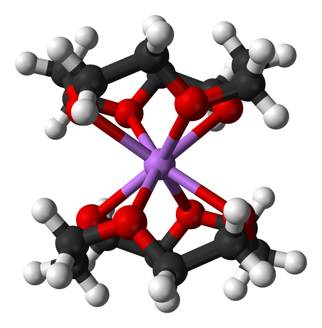 12-크라운-4는 다른 크라운 에테르와 마찬가지로 알칼리 금속 양이온과 복합체를 형성한다.[2]