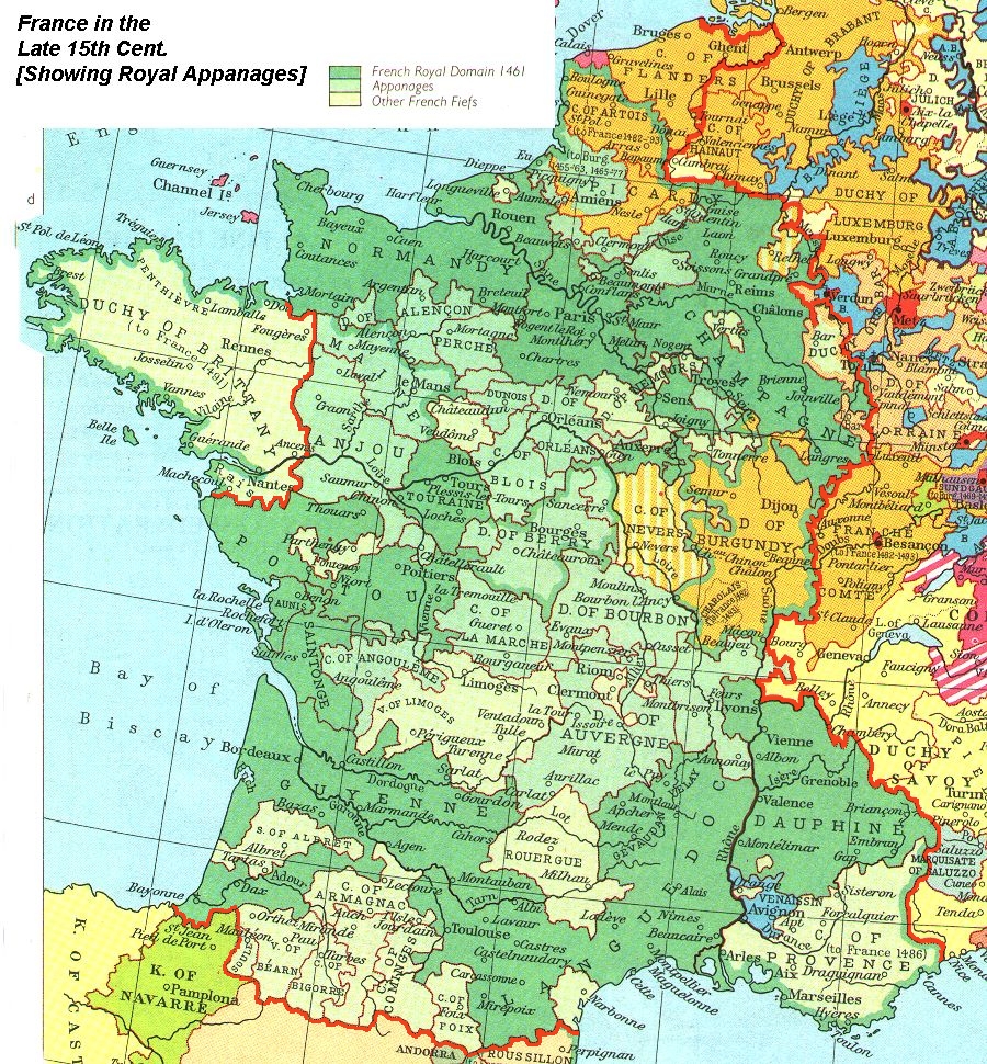 시칠리아에서 감염된 선원들을 태우고 온 독감은 마르세유와 니스 항구를 통해 프랑스 왕국으로 유입되었고, 조선소의 외국인들을 통해 퍼지기 시작했다. "두부 카타르염(''cephalie catarrhal'')"으로 불리기도 했고, 더 대중적으로는 "코켈루셰(''coqueluche'')"라고 불렸다.[148][153][159][171][172][173] 프랑스 역사가 프랑수아-웨드 드 메즈레는 코켈루셰라는 단어의 어원을 1410년대 환자들이 코켈루숑(coqueluchons)과 비슷한 모자를 써야 했던 것에서 찾는다.[175]