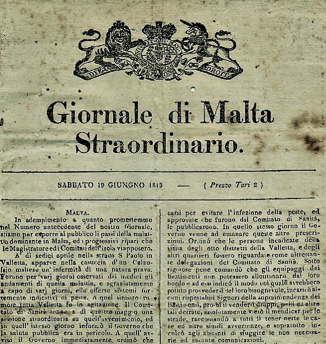 1813년 몰타는 영국 보호령이었으나, 페스트 발병 기간 동안 직할 식민지로 전환되는 과도기였다. 당시 몰타는 전쟁 경제, 영국 해군 주둔, 팔레르모, 나폴리, 리보르노 등지에서 영국 공장 이전, 자유 무역항 지위 등으로 인해 재정적, 인구적 호황을 누리고 있었다.[3][4][5]
