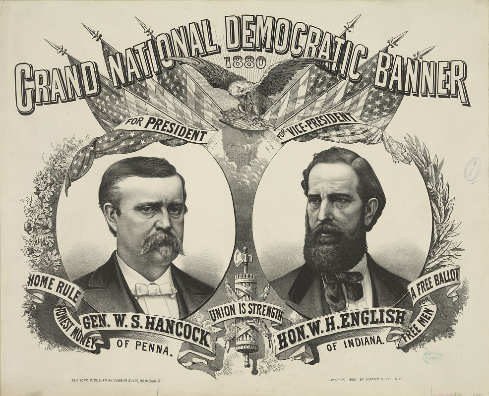 1880년 6월, 민주당 전당대회는 국민적 지지를 등에 업은 윈필드 핸콕 장군을 대통령 후보로 선출했다. 1876년 대통령 선거에서 오하이오주 공화당의 러더퍼드 B. 헤이스는 뉴욕주 민주당의 새뮤얼 J. 틸던을 꺾고 미국의 역사상 가장 치열했던 대통령 선거 중 하나에서 승리했다. 초반 결과는 민주당의 승리를 나타냈지만, 여러 남부 주의 선거인단 투표가 격렬하게 논쟁되었다. 의회의 양당은 초당파 선거 위원회를 소집하는 데 동의했고, 위원회는 최종적으로 헤이스의 승리를 결정했다.[1]민주당에게 "도난된 선거"는 단결을 위한 구호가 되었고, 하원의 민주당 다수는 1878년의 대부분을 선거를 조사하는 데 사용했지만, 공화당에 불리한 새로운 증거를 발견하는 데 실패했다.[2] 처음에는 틸던이 1880년 대통령 후보 지명에서 선두 주자로 여겨졌다.[2]