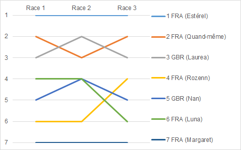 1900년 하계 올림픽 요트 혼합 3t급 경기는 파리에서 열린 요트 종목으로 프랑스 선수들이 금, 은, 동메달을 모두 획득했으며, 약한 바람과 직각으로 부는 바람으로 선수들이 어려움을 겪었다. - 올림픽 요트에 관한 - 1900년 하계 올림픽 요트