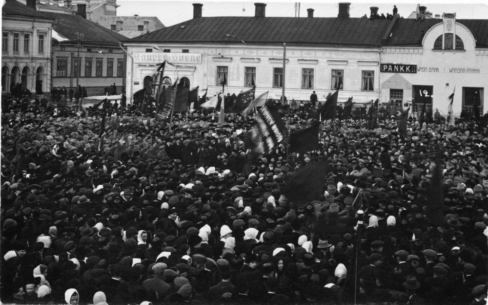 헬싱키 철도광장에서 파업이 시작되자 노동자들은 평등보통선거권에 의해 선출되는 의회를 소집할 것을 요구했다.[1][2][7][3] 헬싱키에서는 러시아 경찰과 관헌들이 거의 행정력을 발휘하지 못하게 되었기에 국민중앙위원회와 국민위병이 만들어졌다.[1][2][7][3] 탐페레에서는 남자 12명, 여자 10명으로 이루어진 노동자위원회가 만들어졌다.[1][2][7][3]