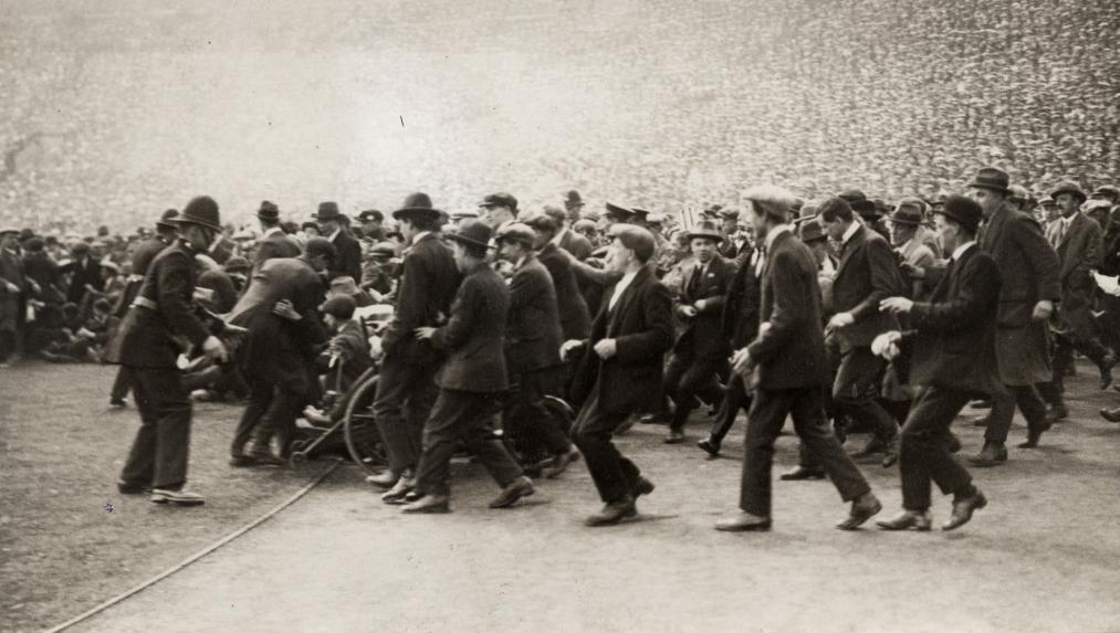 더 타임스는 한때 경기가 시작될 수 없을 것처럼 보였지만, 조지 5세 국왕이 도착하여 왕실석으로 안내된 오후 2시 45분에 상황이 반전되었다고 진술했다. 군중 속에 자리 잡은 아일랜드 근위대와 근위 보병 연대의 밴드는 "여왕 폐하 만세"를 빠른 속도로 연주했고, 군중은 열정적으로 따라 불렀다. 이어 국왕을 위한 만세 삼창이 이어졌고, 군중은 경기장 정리를 돕기 시작했다.
