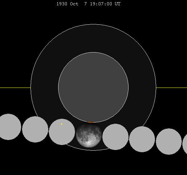 첫 번째 반그림자 외부 접촉 | 1930년 10월 21일 19:04:22.4 UTC |