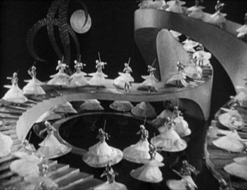 > 정전이 일어나 춤추는 바이올린의 일부가 단락되었다. 버클리는 카메라 붐에서 거의 떨어질 뻔했지만, 한 손으로 매달려 있다가 간신히 다시 올라갈 수 있었다. 그는 약 9.14m 높이의 플랫폼에 있던 많은 소녀들에게 기술자들이 사운드 스테이지 문을 열고 빛을 들이도록 할 때까지 앉아 있으라고 소리쳤다.[16]