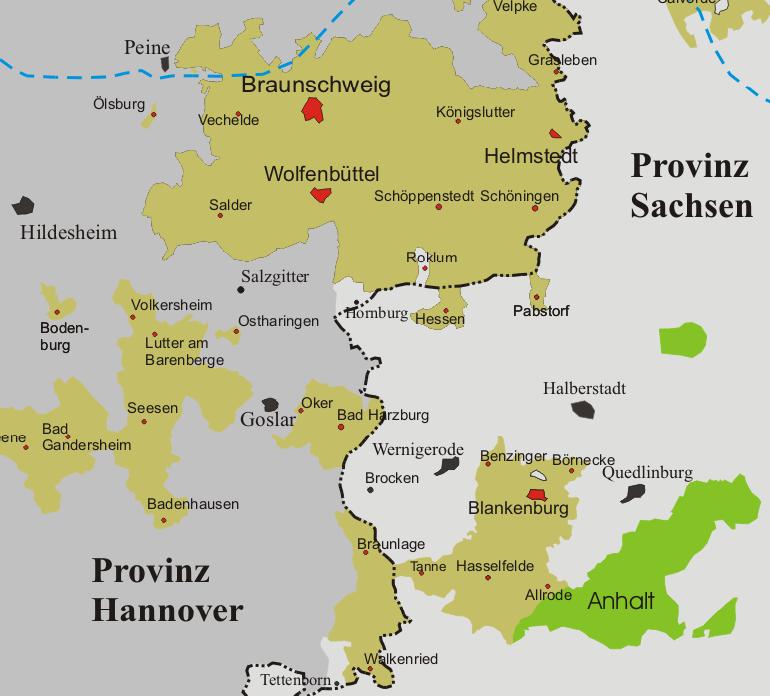 브라운슈바이크주의 블랑켄부르크군은 조르게(Sorge) 지역 서쪽의 좁은 지점을 기준으로 분할되었다. 블랑켄부르크시가 있는 군 지역의 동쪽은 소련 점령 지역이 되었다. 교환된 영토에 살고 있는 사람들은 재산을 유지한 채 지역에 계속 거주했다. 동독이 건국되고 국경에 장벽이 설치되면서 교환된 영토는 사실상 새로운 지역과 통합되었다.