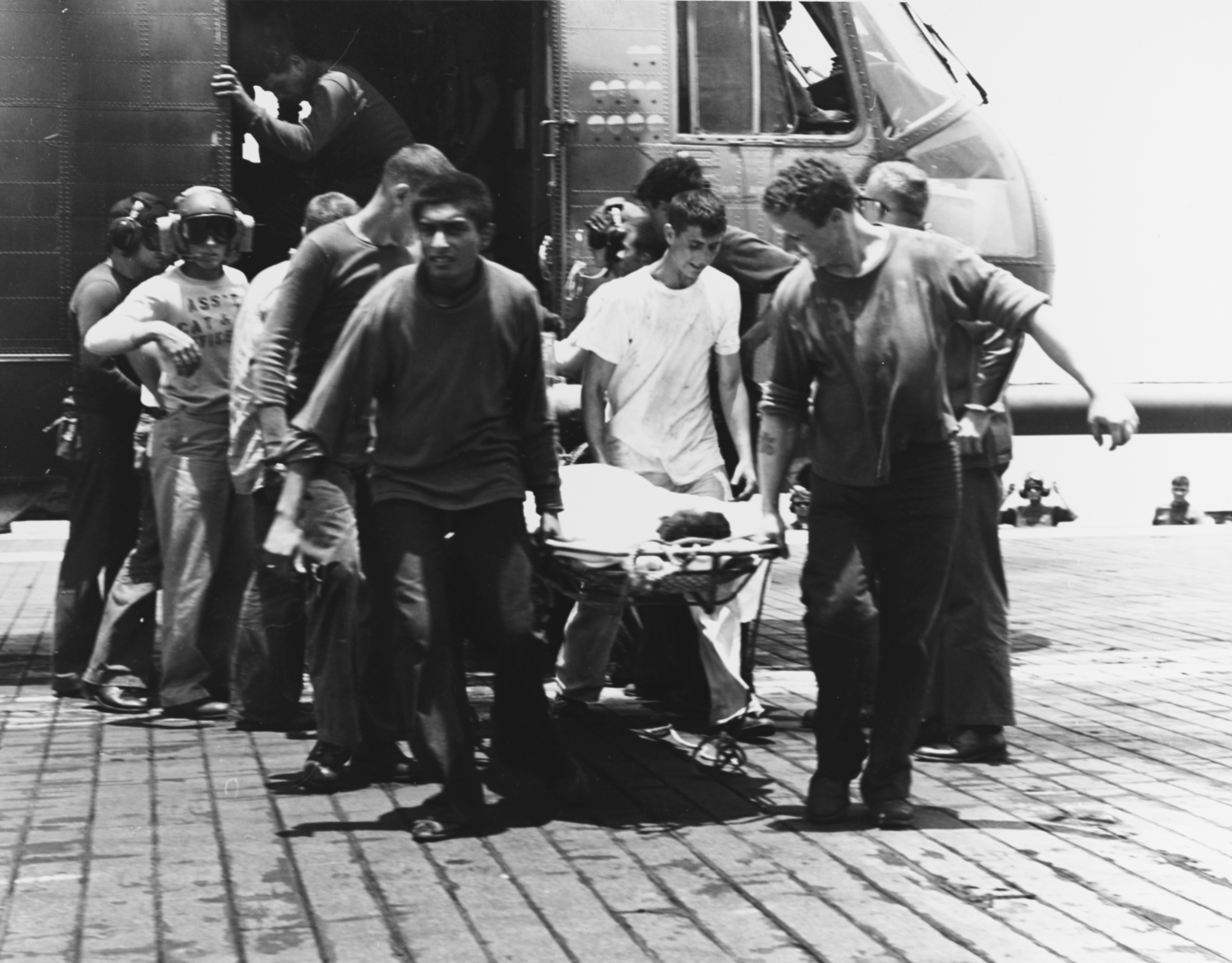 그날 하루 종일, 함선의 의료진은 위험한 상황에서 동료들을 지원했다. 사상자 수가 빠르게 함선의 의료팀을 압도했고, ''포레스탈''은 헨리 W. 터커의 호위를 받으며 20시 54분에 병원선 리포즈와 합류하여 승무원들이 22시 53분에 사망자와 부상자를 이송하기 시작할 수 있도록 했다.[1] 소방관 밀트 크러츨리는 "가장 힘든 일은 나중에 불탄 지역으로 돌아가 죽거나 부상당한 동료들을 찾는 것이었다."라고 말했다. 그는 숯으로 변하고 검게 그을린 시신들이 시체 경직 상태로 굳어 있는 것을 "쓰러진 동료들에게 어느 정도의 존엄성을 유지하면서" 제거하는 것이 극도로 어려웠다고 말했다.[33]