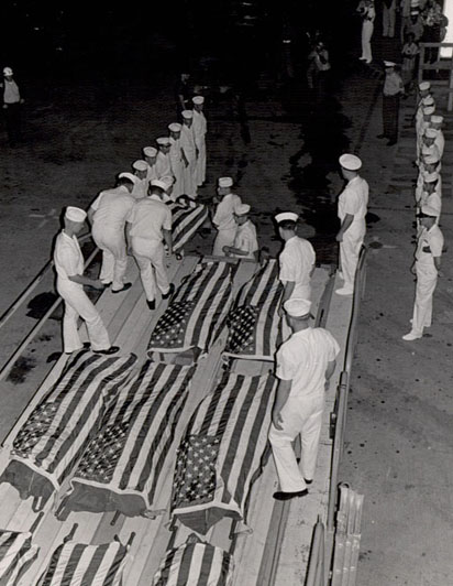 1967년 포레스탈함 화재로 희생된 18명의 승무원은 알링턴 국립묘지에 안장되었고, 베트남 전쟁 기념비에도 이름이 등재되었다.[45][44]