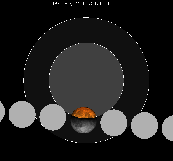 1970년 8월 31일에 발생한 금환 일식은 달이 지구와 태양 사이를 지나면서 태양을 가리는 현상이다. 이 일식은 달의 반그림자나 본그림자가 지구 표면을 스치면서 발생한다.[3]