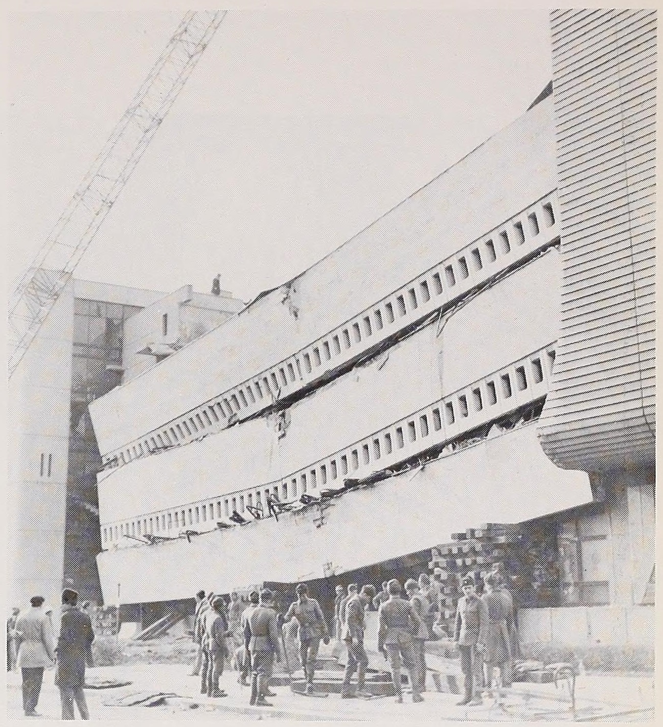 1977년 3월 4일 금요일 오후 9시 22분경, 루마니아에서 지진이 발생했다. 이 지진으로 부쿠레슈티에서는 1,424명이 사망하고 7,598명이 부상을 입었다.[28][37] 부쿠레슈티 시내는 지진으로 인해 특히 아파트와 같은 고층 건물이 피해를 입어 가장 큰 피해와 인명 손실을 보았다. 니콜라에 벌체스쿠 대로 – 마게루 대로 축을 따라 위치한 알지우(일반적으로 스칼라로 알려짐), 두나레아, 카사타 건물과 인근의 콘티넨탈-콜로나델로르 및 네스토르 건물과 같은 상징적인 양차 세계 대전 사이의 건축물들이 완전히 또는 부분적으로 붕괴되었으며, 다른 건물들도 일부 무너졌다.[56][8] 붕괴된 33채의 고층 건물 중 28채는 1920년부터 1940년 사이에 지어졌으며, 이 시기에는 지진에 견디는 설계를 알지 못했다.[56]붕괴된 건물 중 두 채는 공산주의 시대에 지어졌다. 하나는 리제아누 주택 단지(1962년 건설)의 건물로, 건물 끝 부분(1층, 상점)의 지지 기둥이 잘려 나가 지진으로 인해 일부가 붕괴되었고, 결국 그 부분이 철거되어 대부분 재건되지 않았다. 또 다른 건물은 밀리타리에 위치한 OD16이라는 아파트 단지로, 1972년에서 1975년 사이에 지어졌으며, 건설 결함으로 인해 완전히 붕괴되었다. 당시 기준 미달 콘크리트가 사용되었고, 건설 중 콘크리트에 공기 구멍이 생겼으며, 심지어 콘크리트에서 부츠가 발견되었다.[57][9] 금속부 장관실, 화학부, 컴퓨터 센터 등 3개의 공공 건물도 붕괴되었지만, 지진 당시에는 인원이 많지 않았다.[58][10]
