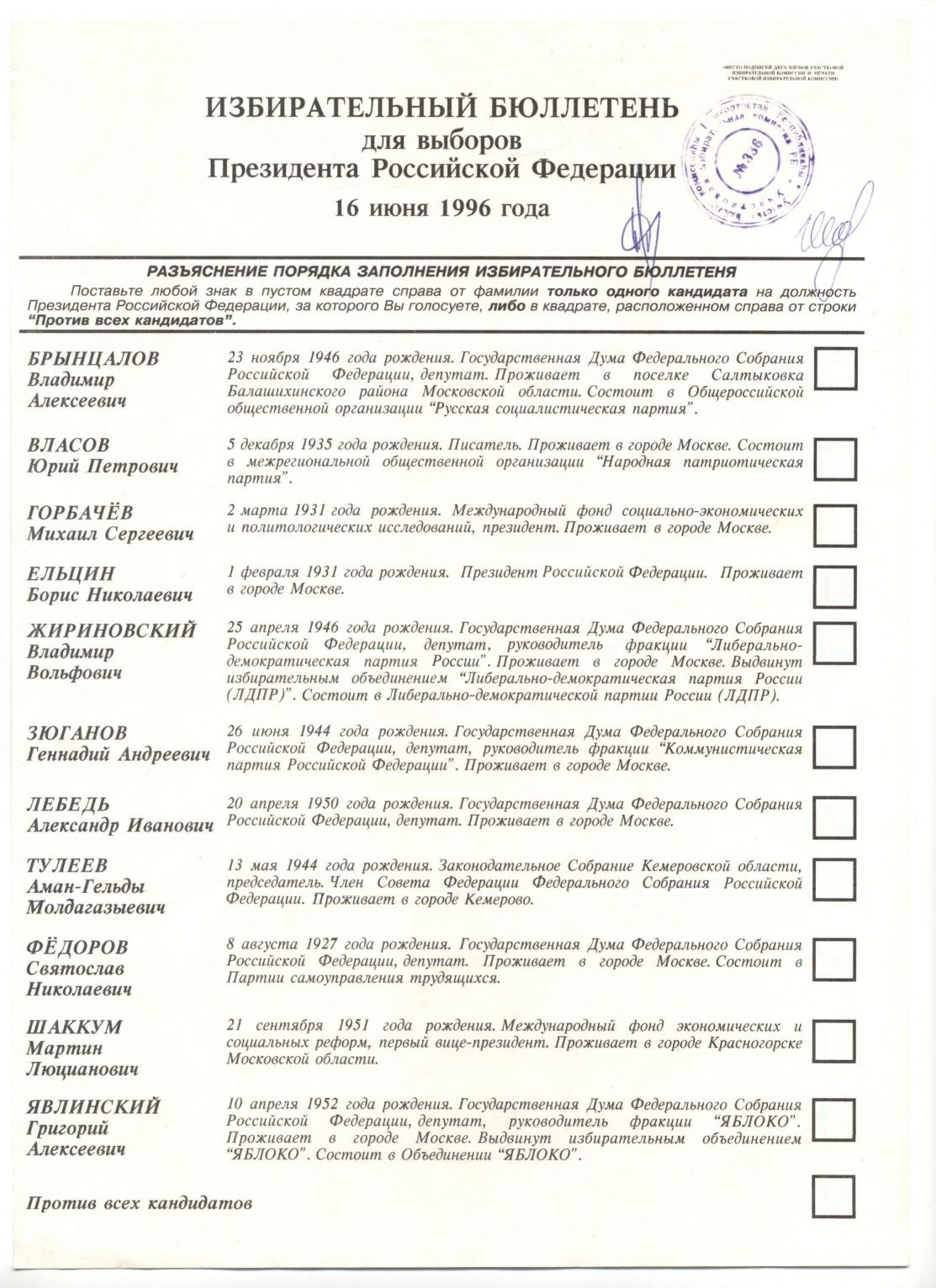 Голосование. Мы вернулись в 1996 год. За кого будете голосовать?
