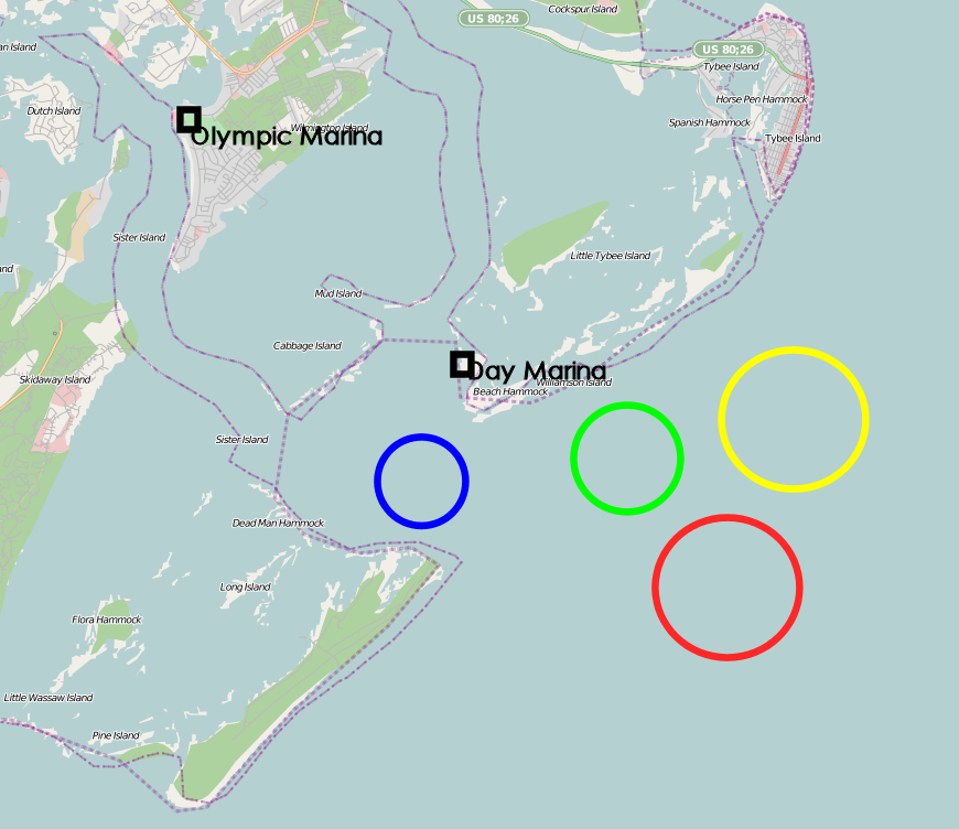 - 윌밍턴 아일랜드의 올림픽 마리나. 스타급과 솔링급은 올림픽 마리나와 경주 구역 사이에서 예인되었다.